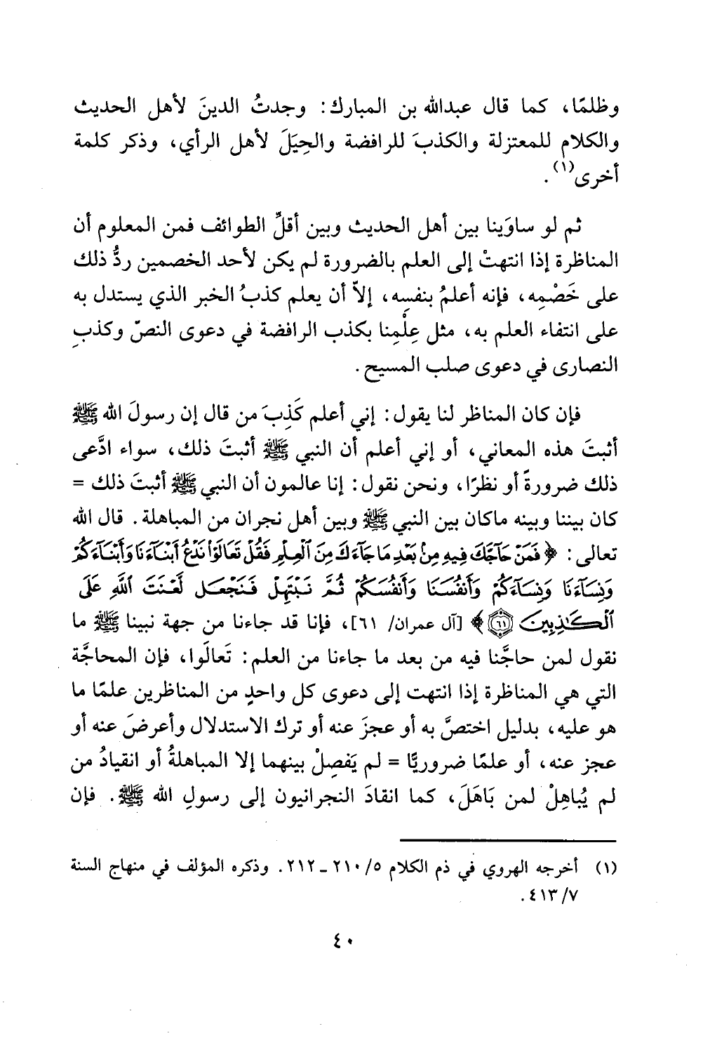 المناظرة إذا انتهت إلى العلم بالضرورة لم يكن لأحد الخصمين رد ذلك