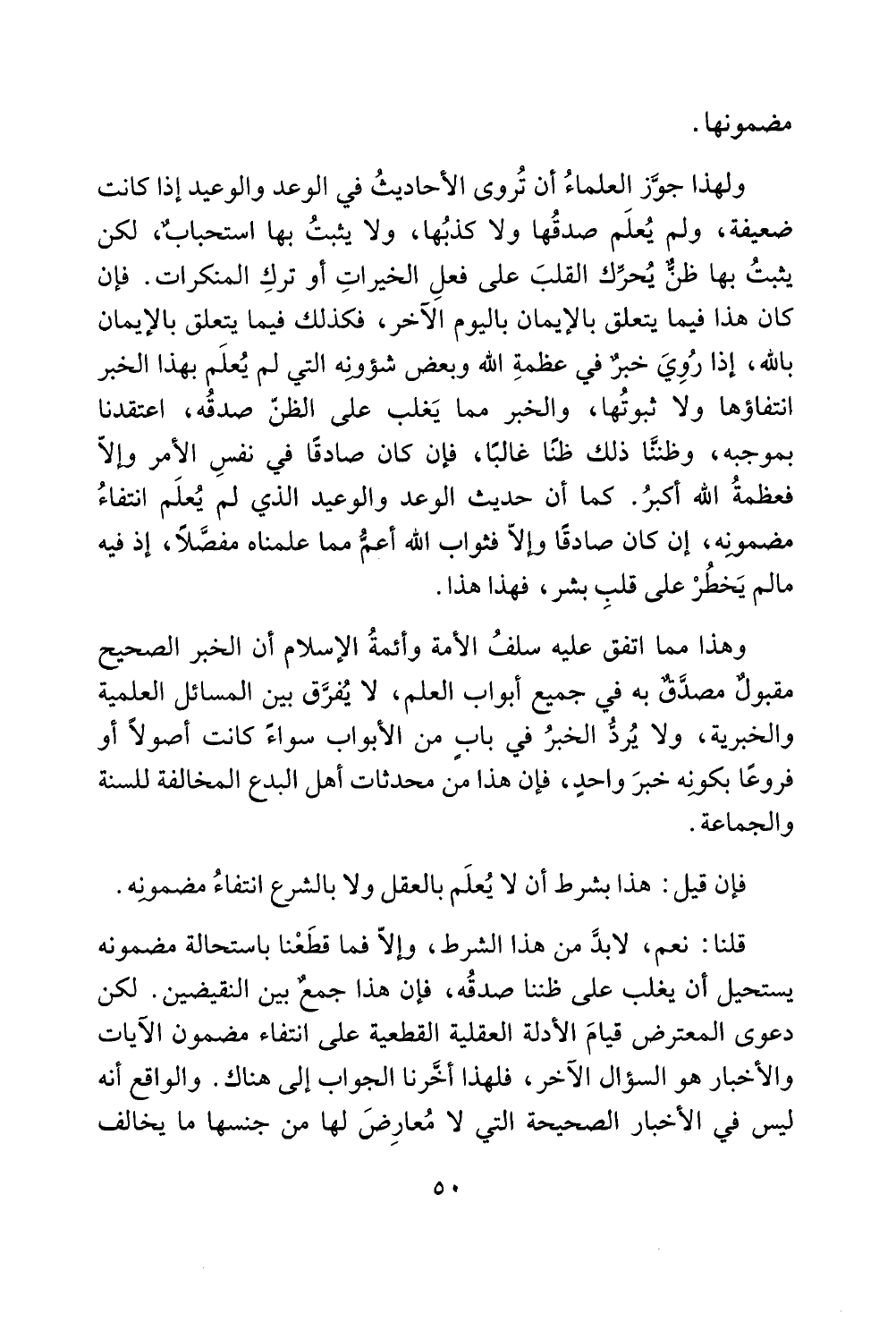 وهذا مما اتفق عليه سلف الامة و ئمة الاسلام أن الخبر الصحيح