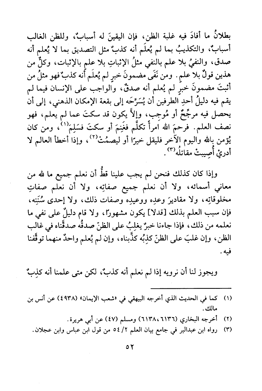 هذين قو 4 بلا علم. ومن نفى مضمون خبر لم يعلم أنه كذب فهو مثل من