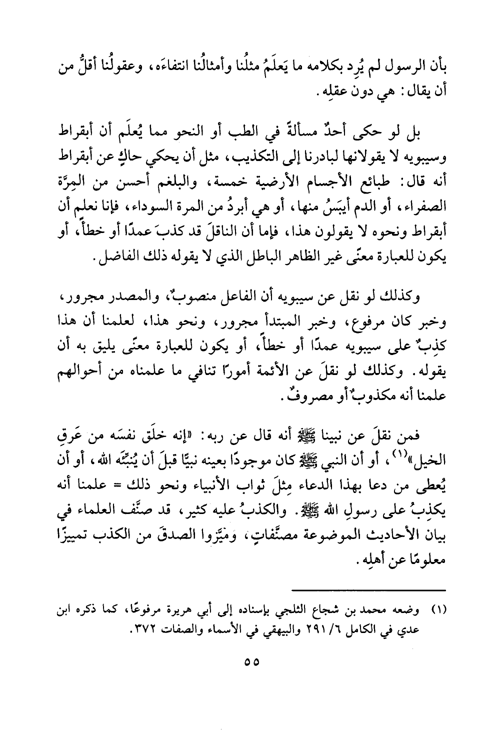 وسيبويه لا يقولانها لبادرنا إلى التكذيب، مثل أن يحكي حاك عن أبقراط