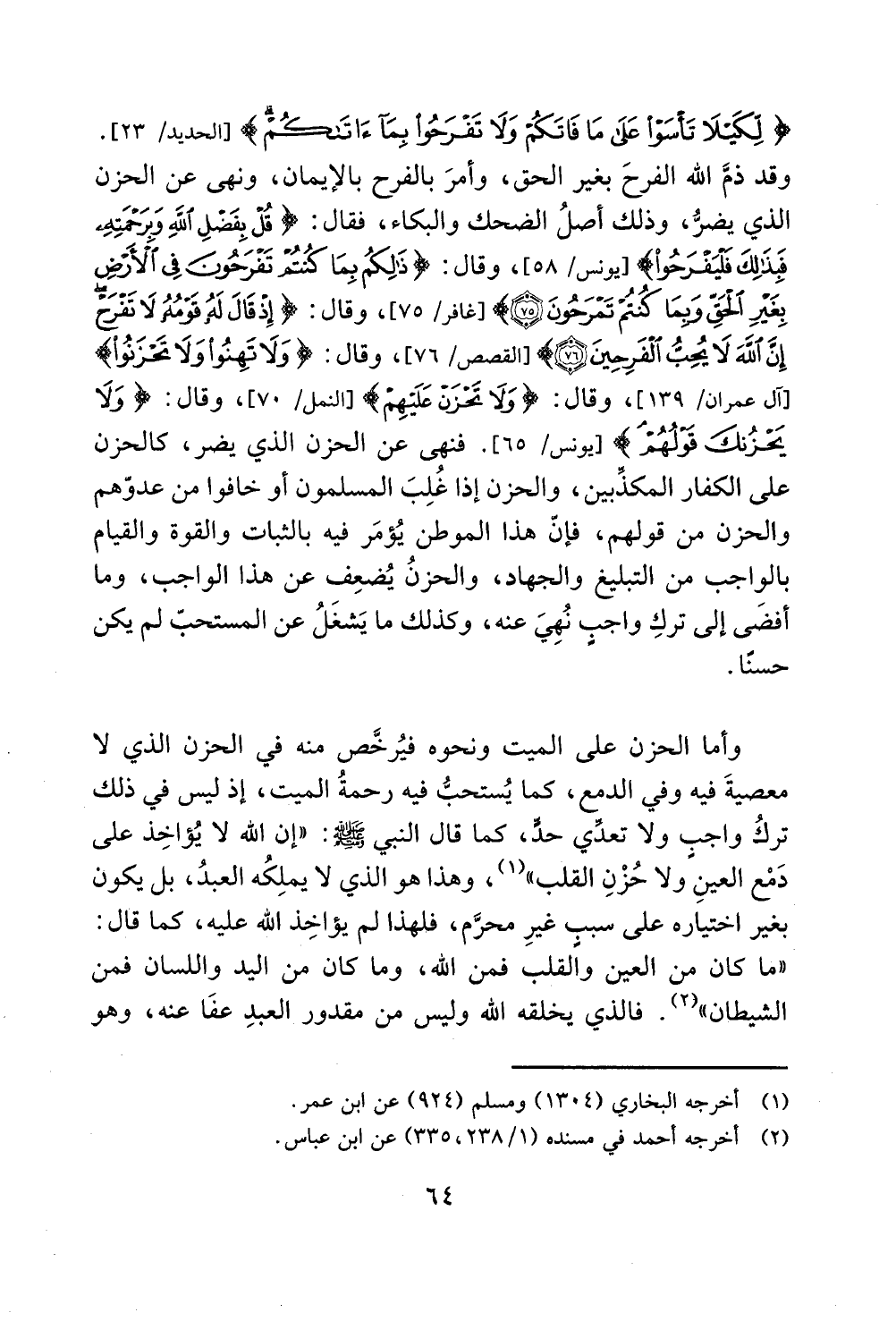 إن الله لا! ب الفرحين *> 1 لقصص / 76]، وقال: < ولاتهنوأ ولا تحزنوا)