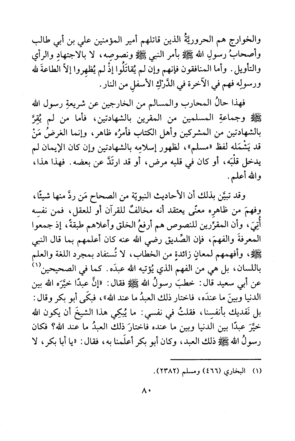 المعرفة والفهم، فان الصديق رضي الله عنه كان أعلمهم بما قال النبي