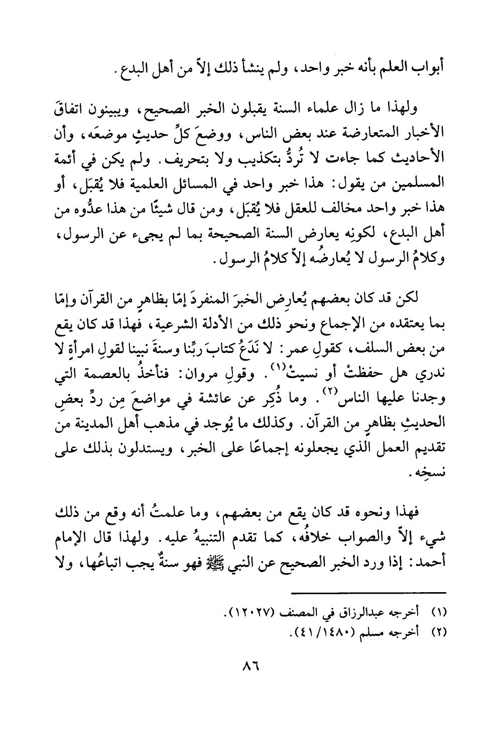 ولهذا ما زال علماء السنة يقبلون الخبر الصحيح، ويبينون اتفاق