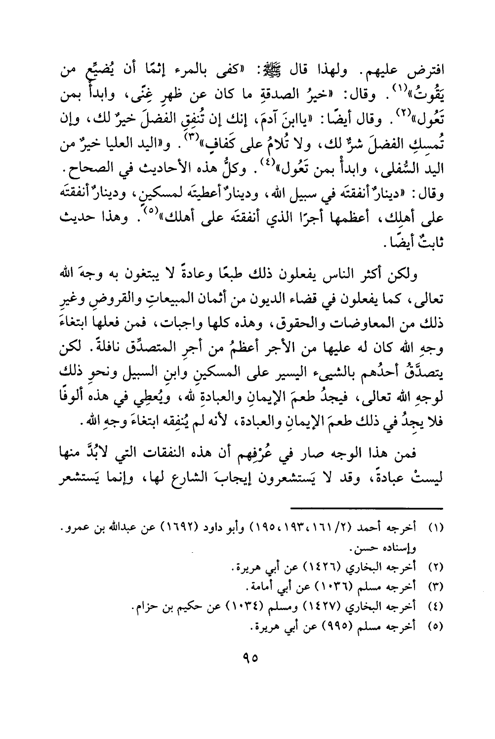 اليد السفلى، وابد بمن تعول " (4). وكل هذه الأحاديث في الصحاح.