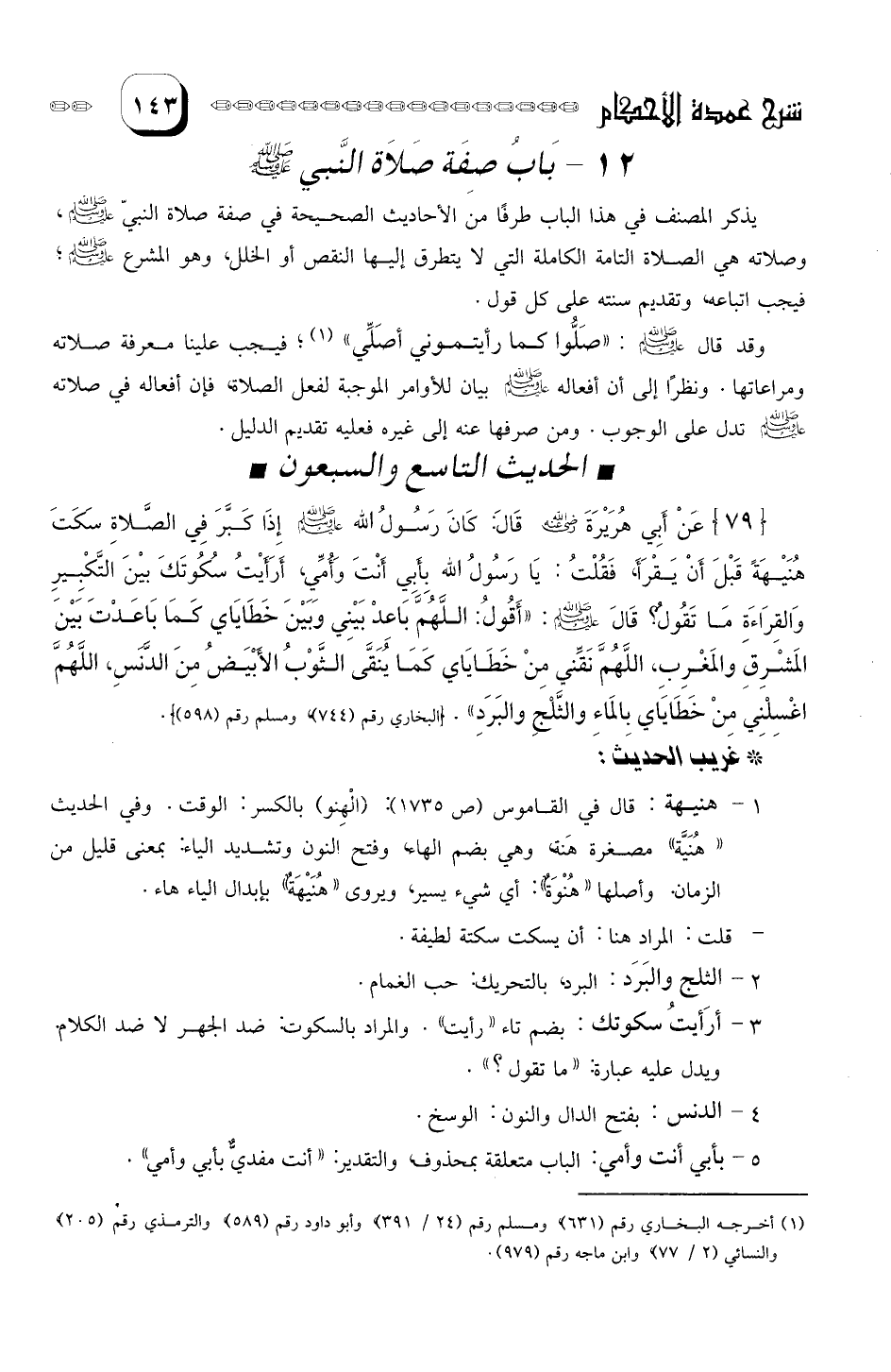 عَنْ أبي هريرة رضيَ الله عَنْهُ قال: كَانَ رسول الله صلى الله عليه وسلم إِذَا كَبَّرَ في الصَّلاةِ سَكَتَ هُنَيْهَةً قَبْل أن يَقْرَأ، فَقُلْتُ: يا رَسُولَ الله بأبي أنْتَ وأمي، أرَأيتُ سُكُوتَكَ بين التَكْبِيرِ وَالقِراءةِ، ما تَقُولُ؟.