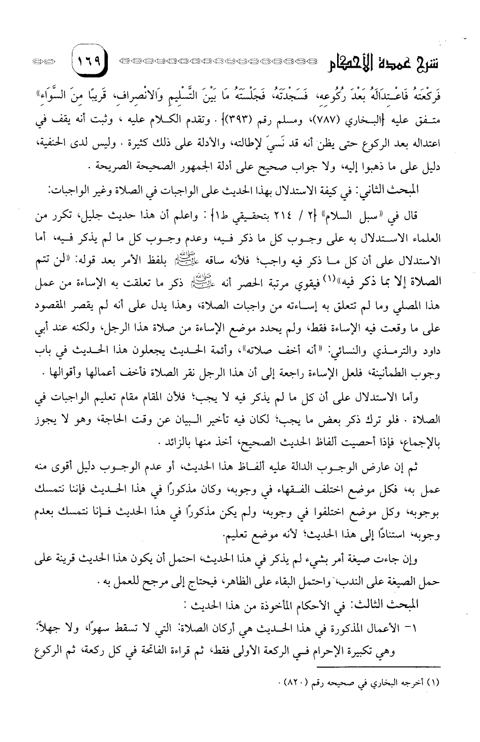 قال في "سبل السلام": واعلم أن هذا حديث جليل، تكرر من العلماء الاستدلال به على وجوب كل ما ذكر فيه، وعدم وجوب كل ما لم يذكر فيه.