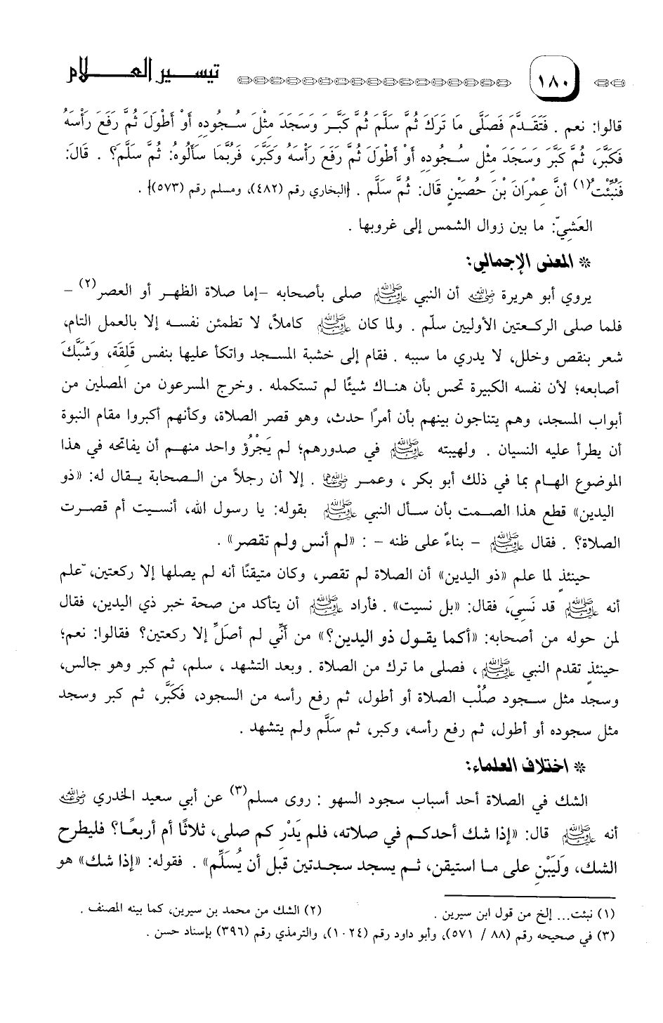 قَالَ فَنُبِّئْتُ (¬1) أنَّ عِمْرانَ بنَ حُصَيْن قال: ثم سَلمَ ".