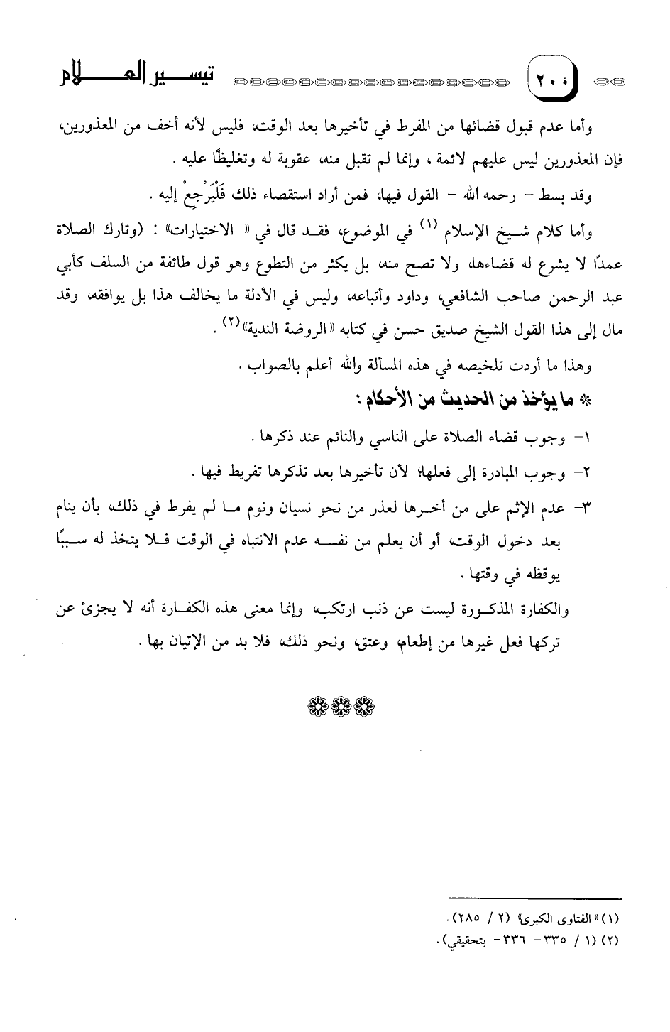 3- عدم الإثم على من أخرها لعذر من نحو نسيان ونوم، ما لم يفرط في ذلك