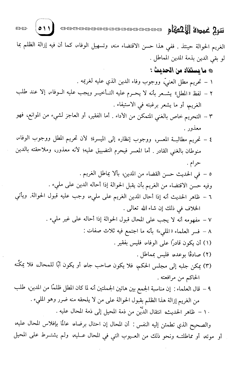 10- ظاهر الحديث، انتقال الديْن من ذمة المحيل إلى ذمة المحال عليه.