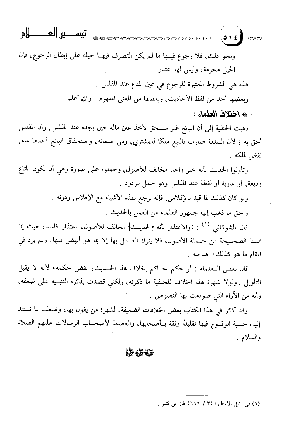 ولولا شهرة هذا الخلاف للحنفية ما ذكرته، ولكنى قصدت بذكره التنبيه على ضعفه، وأنه من الآراء التي صودمت بها النصوص.
