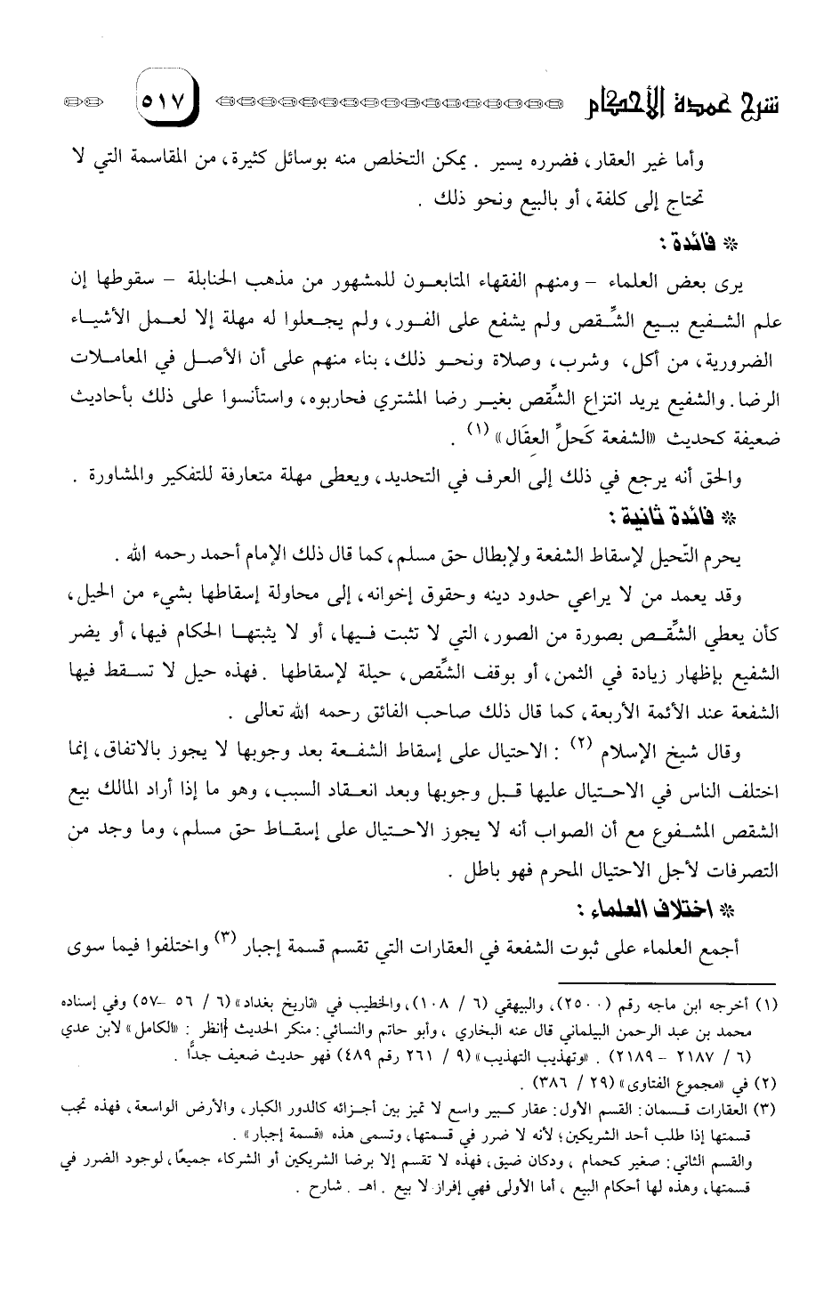 فهذه حيل لا تسقط فيها الشفعة عند الأئمة الأربعة، كما قال ذلك صاحب الفائق رحمه الله تعالى.