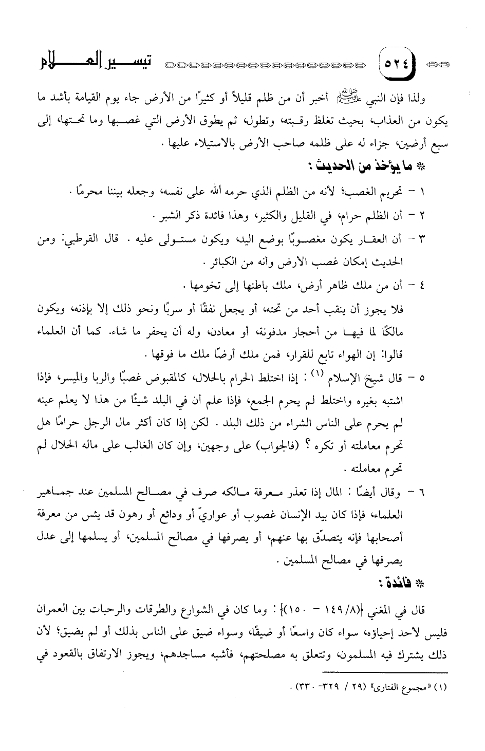 2- أن الظلم حرام، في القليل والكثير، وهنا فائدة ذكر الشبر