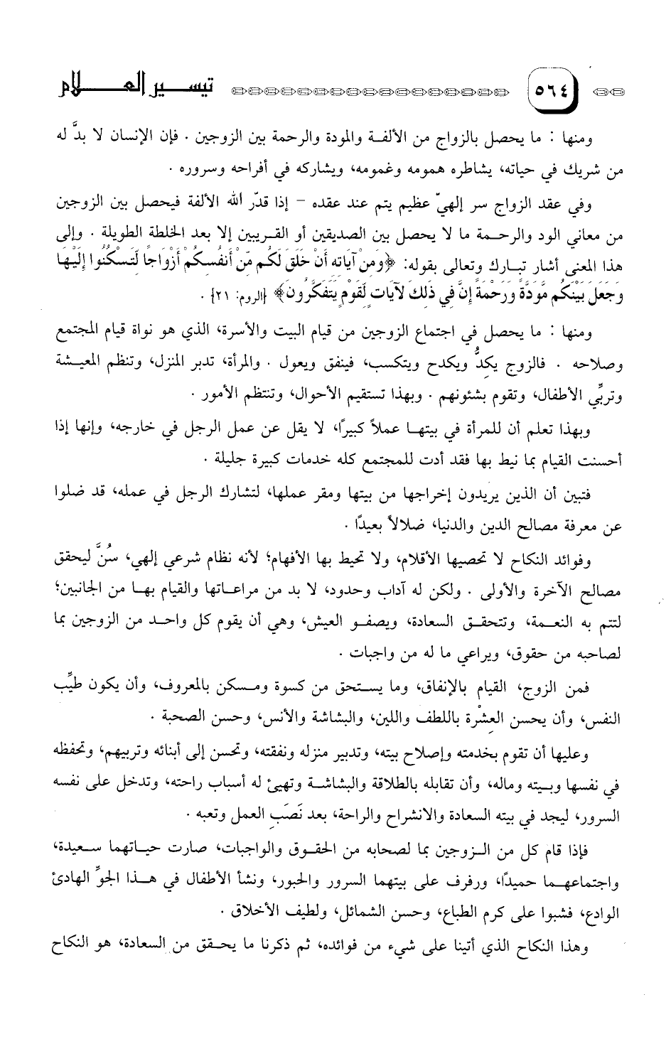 وفي عقد الزواج سر إلهي عظيم يتم عند عقده- إذا قدّر الله الألفة فيحصل بين الزوجين من معاني الود والرحمة مالا يحصل بين الصديقين أو القريبين إلا بعد الخلطة الطويلة.