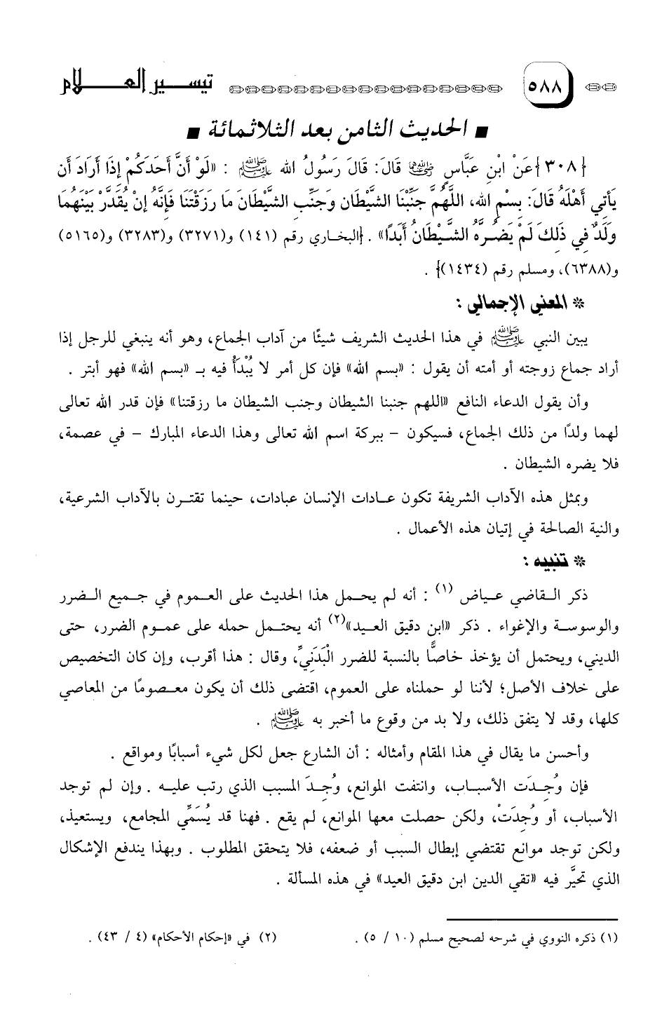 وبهذا يندفع الإشكال الذي تحير فيه (تقي الدين بن دقيق العيد) في هذه المسألة.