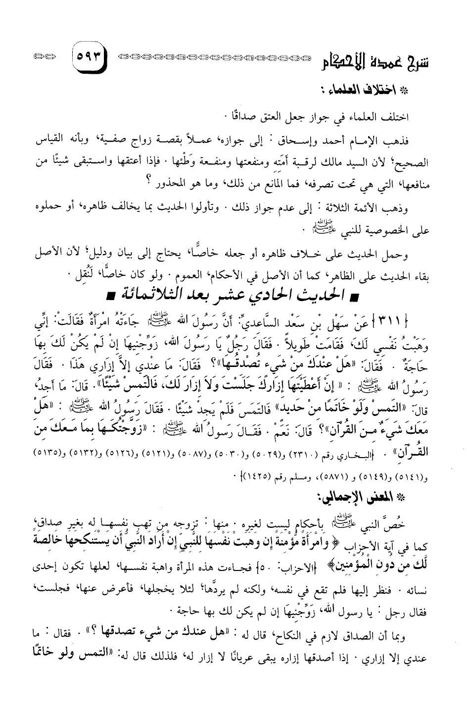 عَنْ سَهل بن سَعدٍ الساعِدِي: أن النبي صلى الله عليه وسلم أعتَقَ صَفيةَ وَجَعَل عِتْقَهَا صَدَاقَهَا.