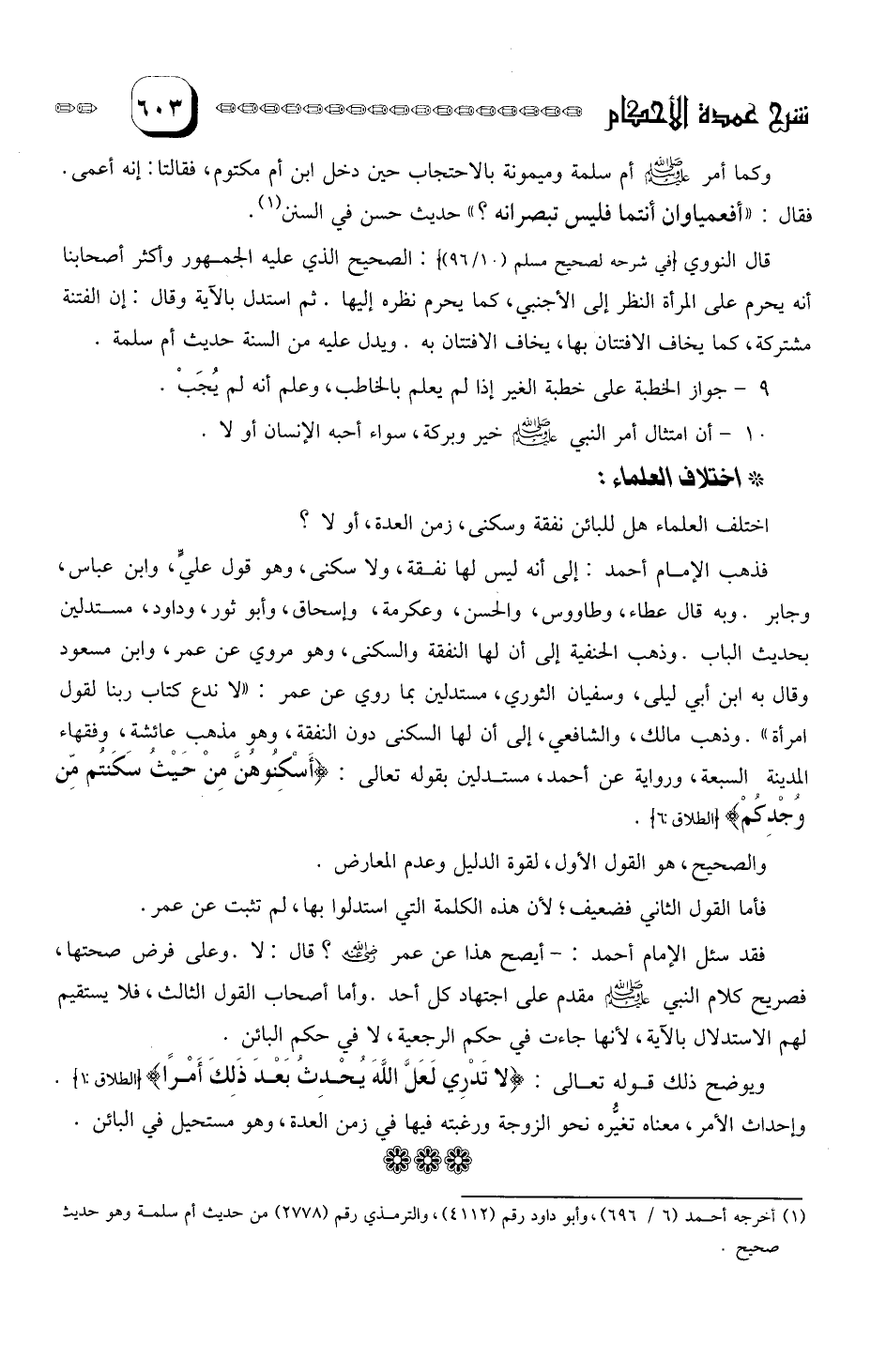 فقال: "أفعمياوان أنتما فليس تبصرانه؟ " حديث حسن في السنن. قال النووي: الصحيح الذي عليه الجمهور وأكثر أصحابنا أنه يحرم على المرأة النظر إلى الأجنبي، كما يحرم نظره إليها. ثم استدل بالآية وقال: إن الفتنة مشتركة، كما يخاف الافتتان بها، يخاف الافتتان به. ويدل عليه من السنة حديث أم سلمة.