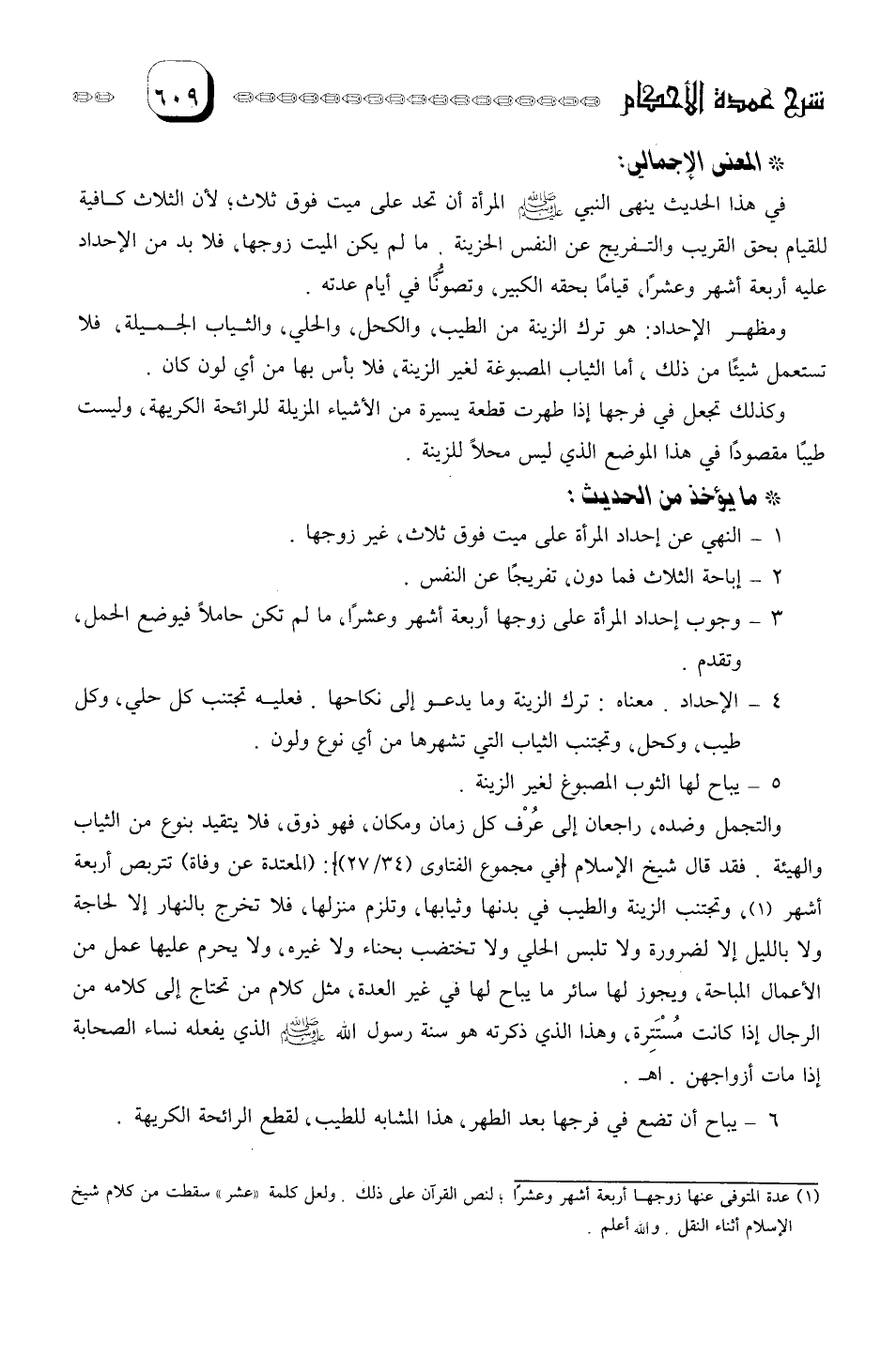 1- النهي عن إحداد المرأة على ميت فوق ثلاث، غير زوجها.