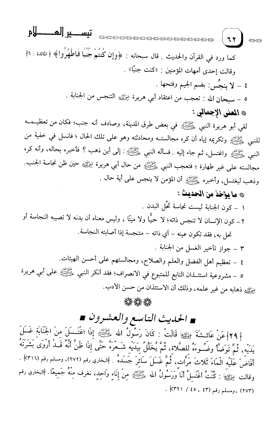 5- "سبحان الله": تعجب من اعتقاد أبي هريرة التنجس من الجنابة.