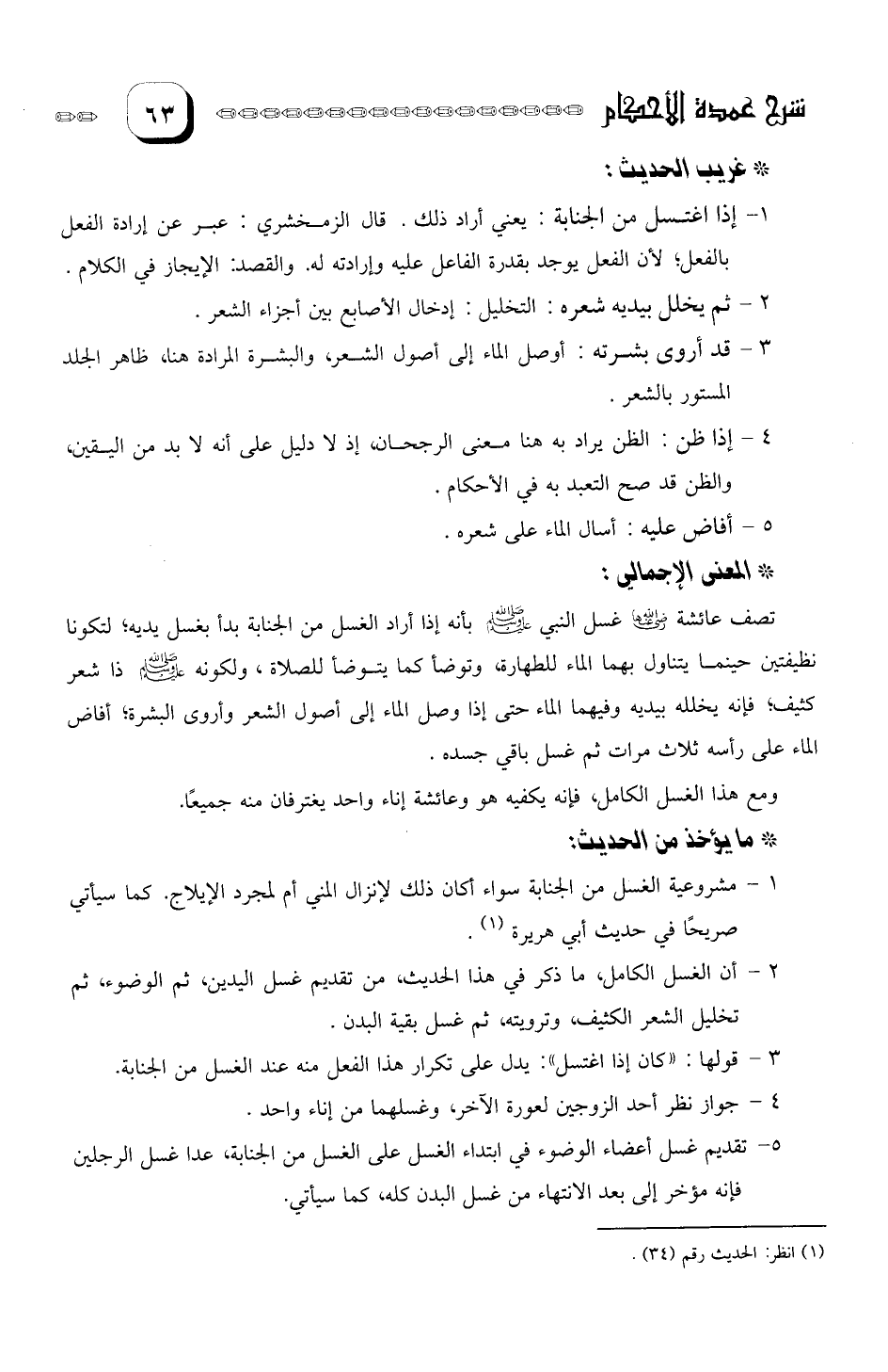 1- مشروعية الغسل من الجنابة. سواء أكان ذلك لإنزال المنى أم لمجرد الإيلاج. كما سيأتي صريحا في حديث أبي هريرة.