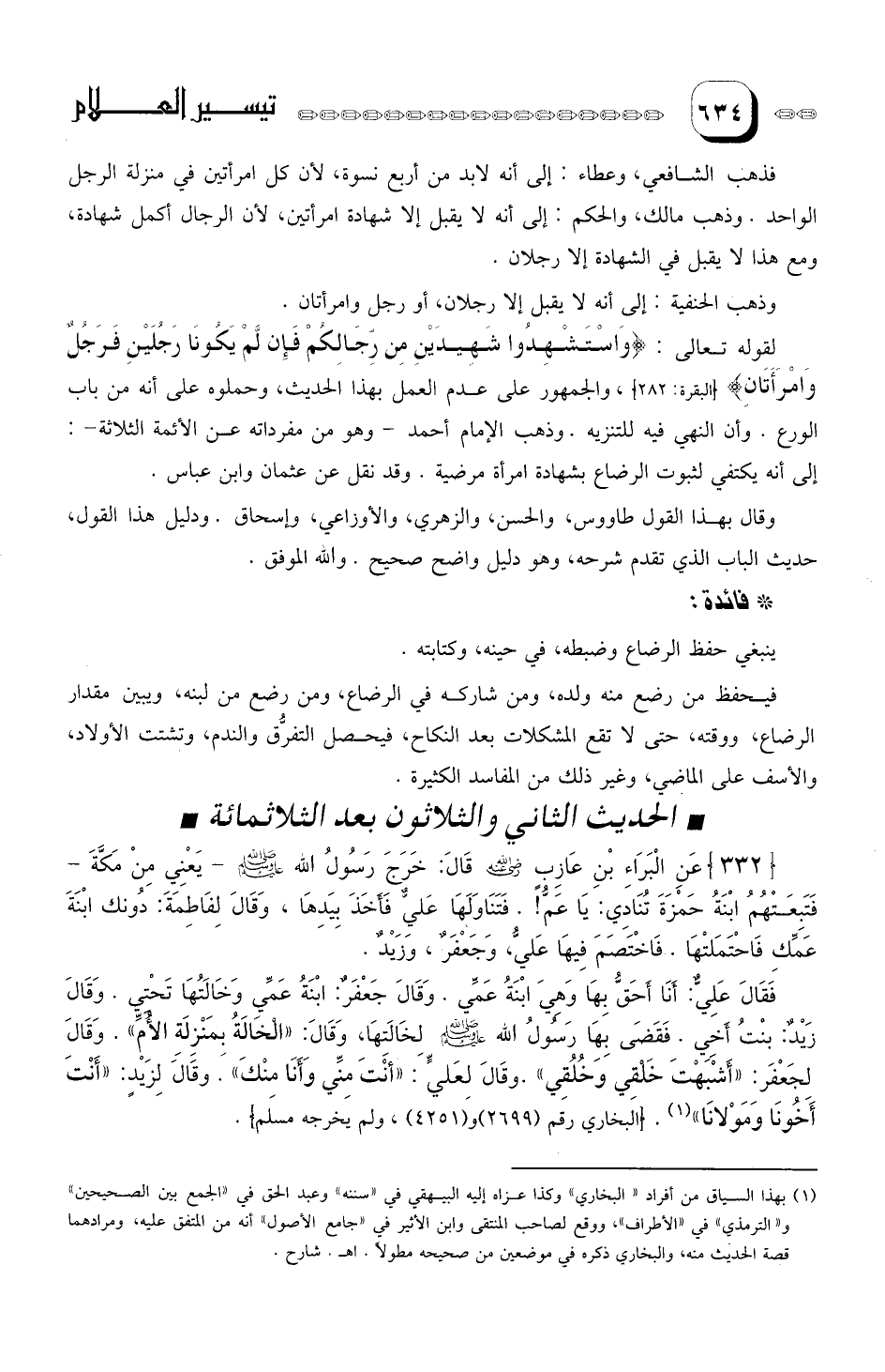 عَنِ الْبَراء بْنِ عَازِب رَضي اللَه عَنْهُ قَالَ: خَرَج رَسُولُ الله صلى الله عليه وسلم -يَعْني مِنْ مَكةَ- فَتَبِعَتْهُمُ ابُنَةُ حَمْزَةَ تُنَادِي: يا عم.