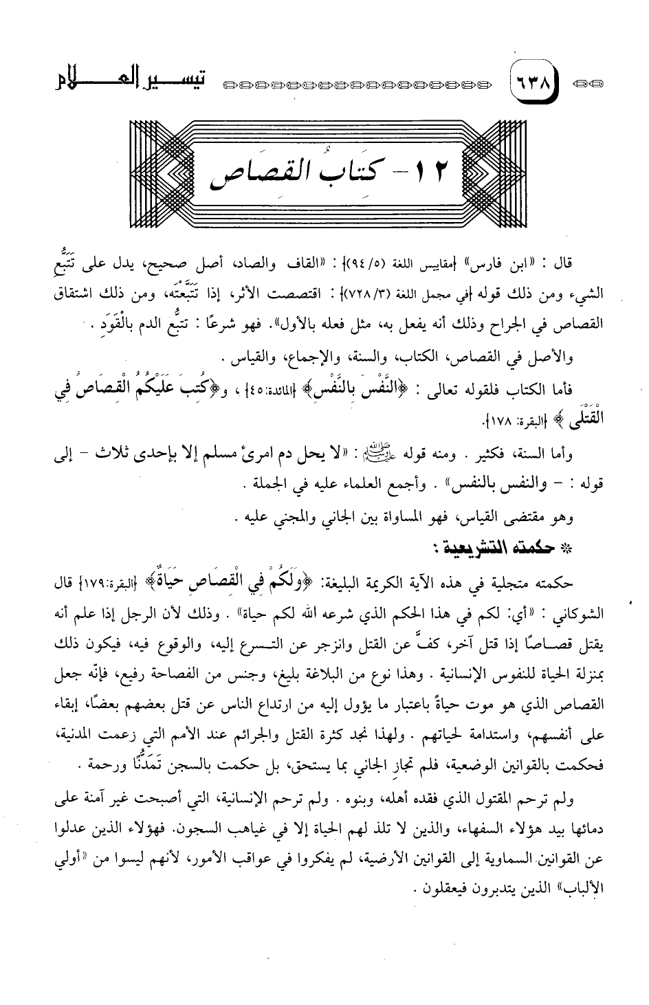 وأما السنة، فكثير. ومنه قوله صلى الله عليه وسلم: "لا يحل دم امرئ مسلم إلا بإحدى ثلاث- إلى قوله: - والنفس بالنفس".