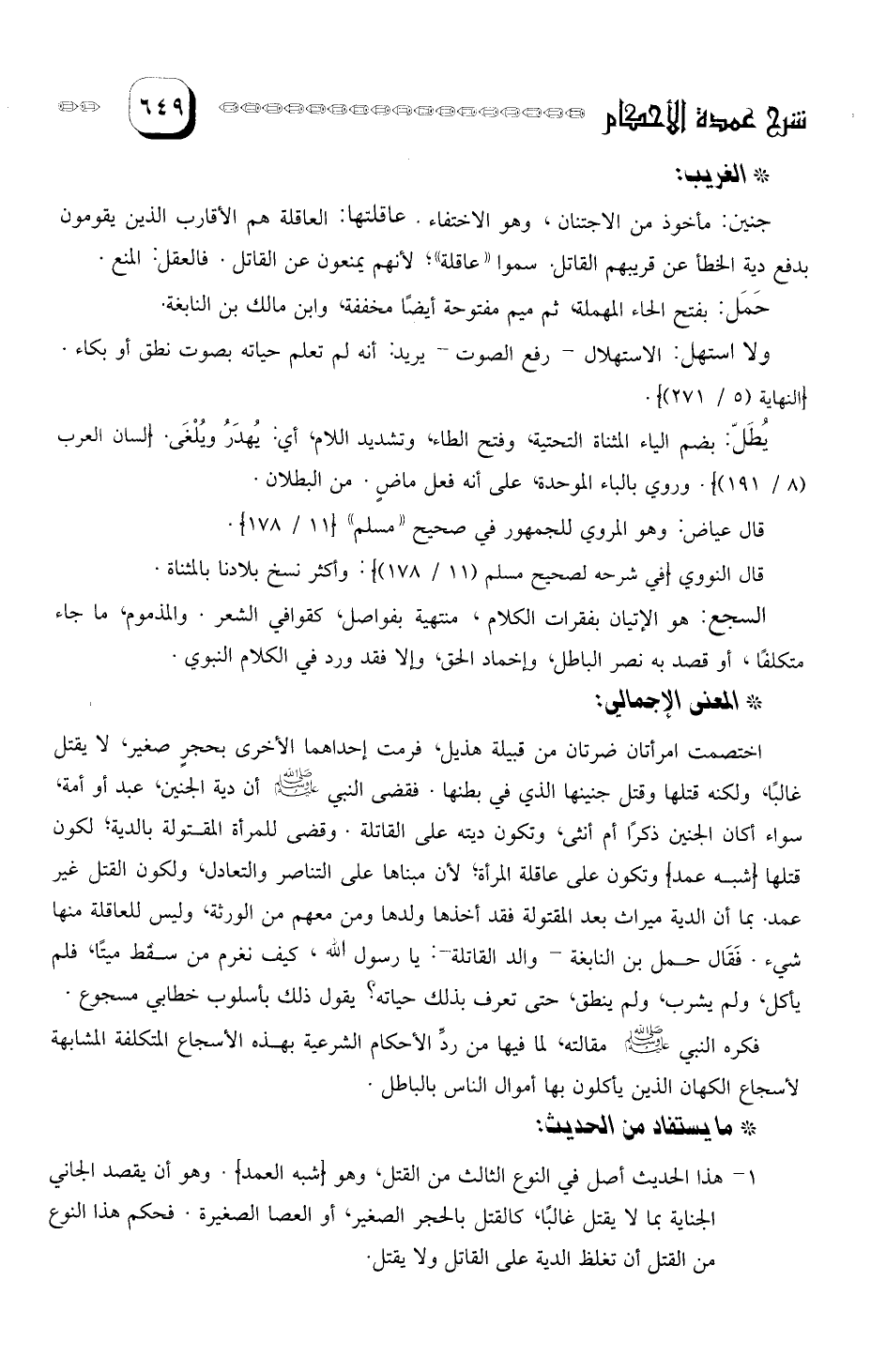 1- هذا الحديث أصل في النوع الثالث من القتل، وهو [شبه العمد] . وهو أن يقصد الجاني الجناية بما لا يقتل غالباً، كالقتل بالحجر الصغير، أو العصا الصغيرة.