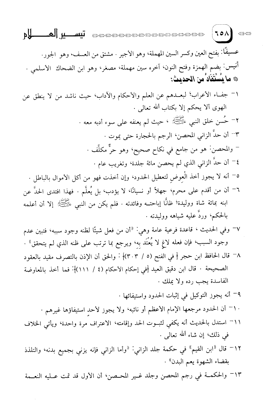 10- أن الحدود مرجعها الإمام الأعظم أو نائبه، ولا يجوز لأحد استيفاؤها غيرهم.
