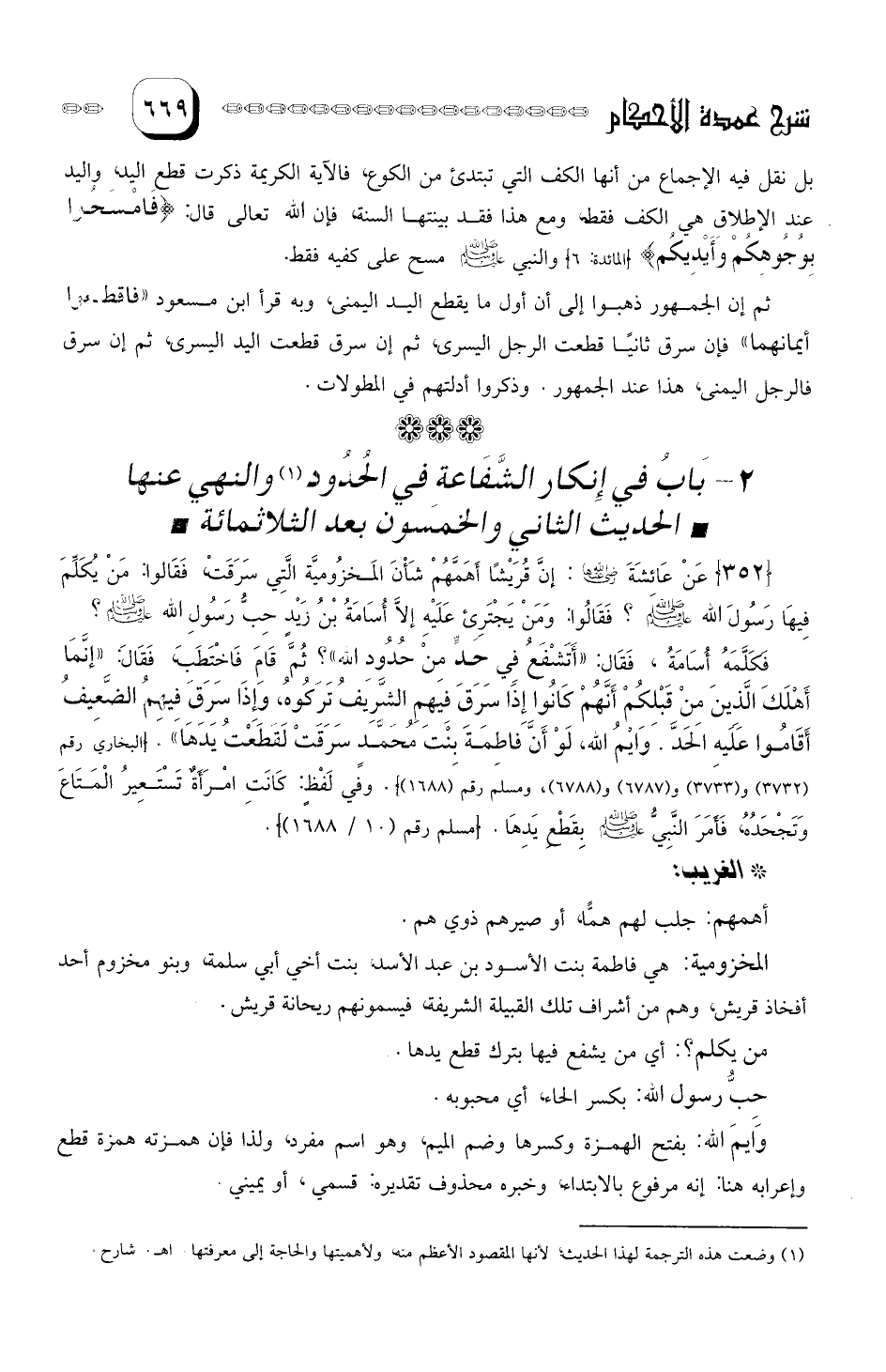 عَنْ عَاِئشَةَ رَضي الله عَنْهَا: إنَّ قُرَيْشاً أهَمَّهُمْ شَأنُ الْمَخْزُومِيَّة التي سَرَقَتْ، فَقَالُوا: مَنْ يُكَلِّمَ فِيهَا رَسُولَ الله صلى الله عليه وسلم؟.