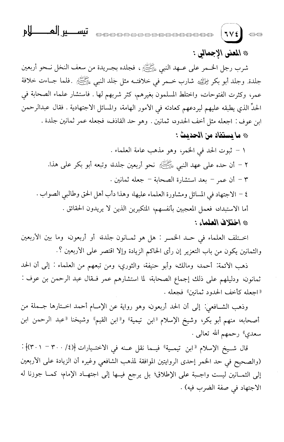 قال شيخ الإسلام (ابن تيميه) فيما نقل عنه في الاختيارات: