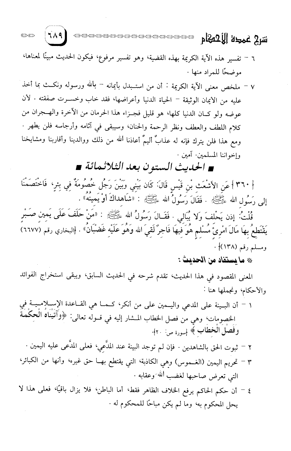 عَنِ الأشْعَثِ بْن قَيْس قَالَ: كَانَ بيني وَبَيْنَ رَجُل خُصُومَةٌ في بِئر، فاخْتَصَمْنَا إلى رَسُولَ الله صلى الله عليه وسلم.