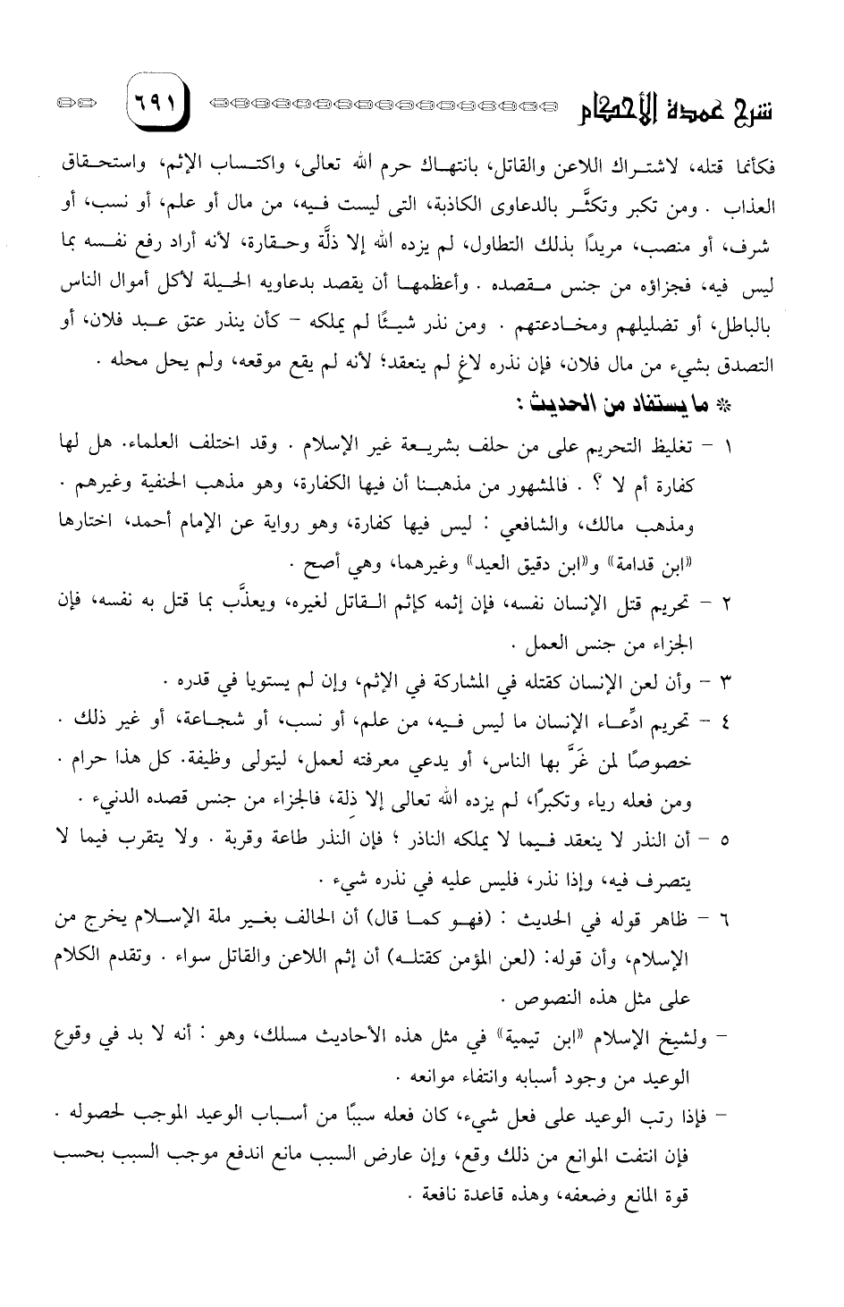 6- ظاهر قوله في الحديث: (فهو كما قال) أن الحالف بغير ملة الإسلام يخرج من الإسلام، وأن قوله (لعن المؤمن كقتله) أن إثم اللاعن والقاتل سواء. وتقدم الكلام على مثل هذه النصوص.