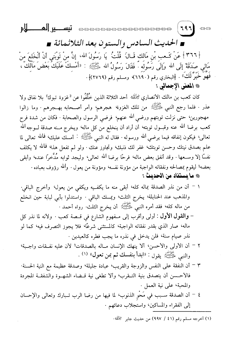 عَنْ كَعْبِ بْن مَالِكٍ قالَ: قُلْتُ يَا رَسُولَ الله، إنَّ مِنْ تَوبَتِي أنْ أنْخَلِعَ مِنْ مَالي صَدَقَةً إلَى الله وَإلَى رَسُولِهِ.