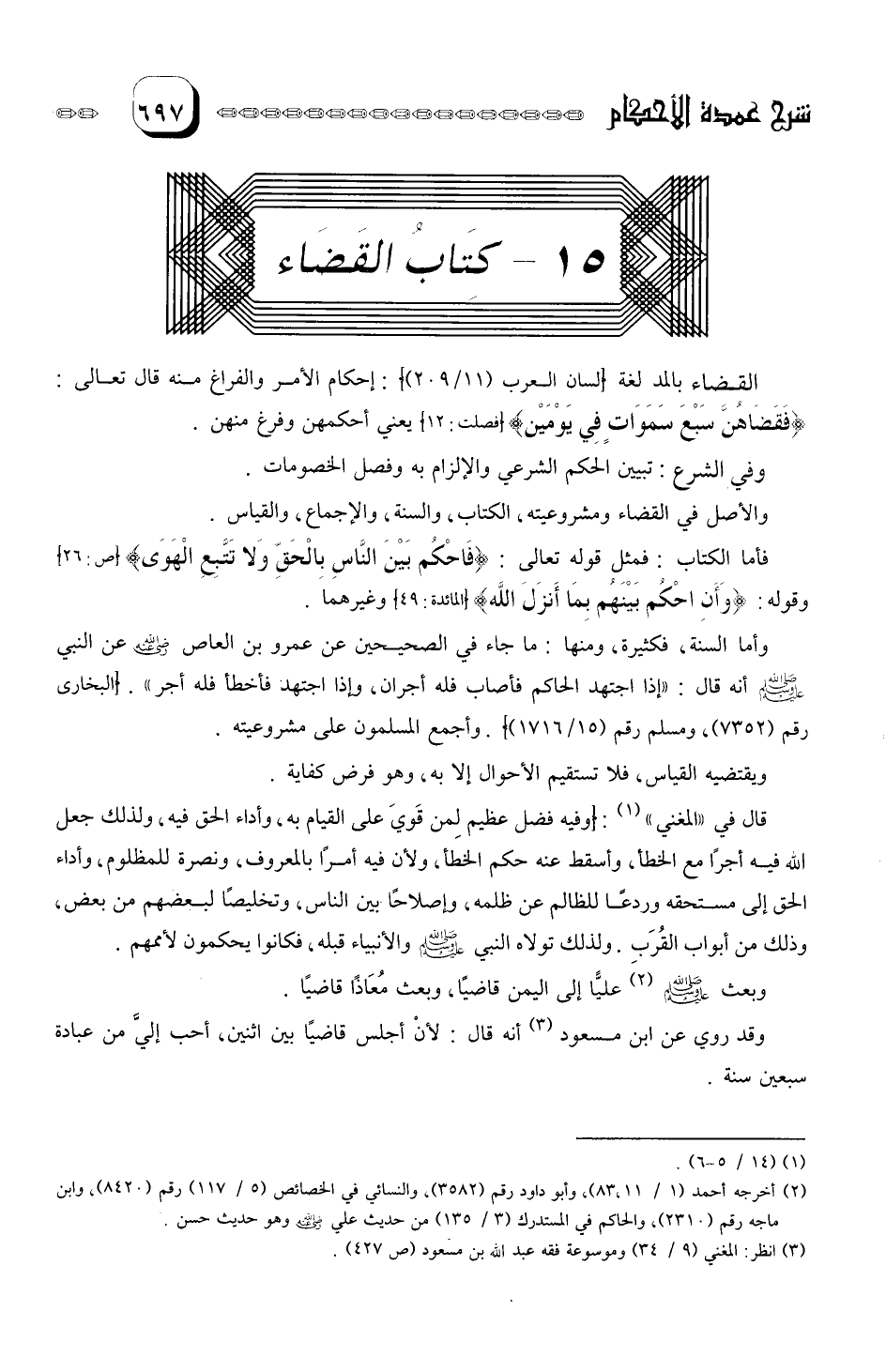 وأما السنة، فكثيرة، ومنها: - ما جاء في الصحيحين عن عمرو ابن العاص عن النبي صلى الله عليه وسلم أنه قال: " إذا اجتهد الحاكم فأصاب فله أجران، وإذا اجتهد فاخطأ فله أجر".