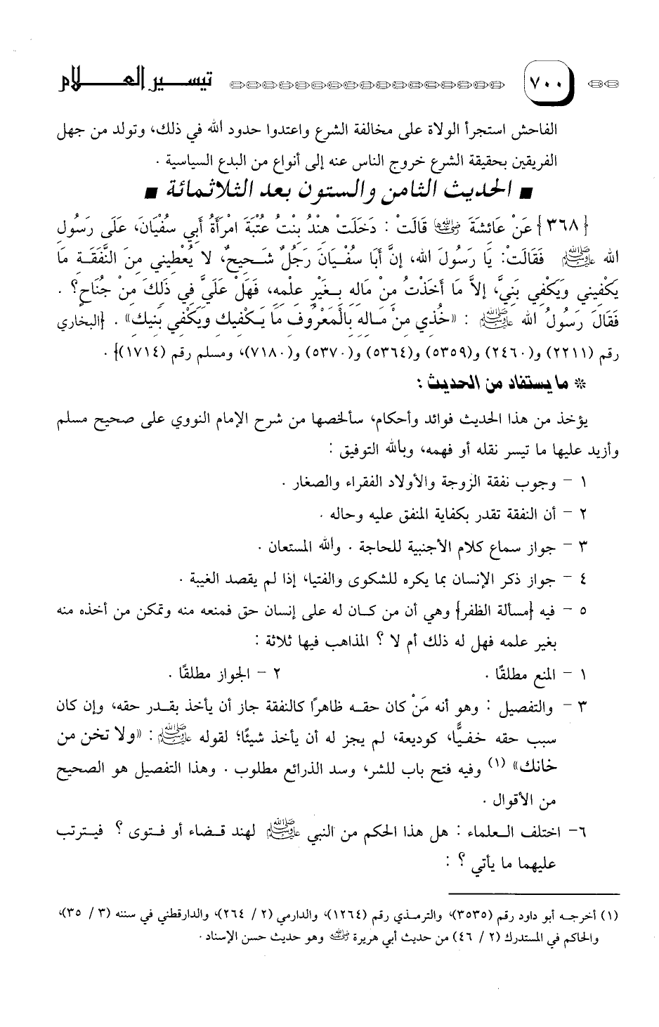 6- اختلف العلماء: هل هذا الحكم من الني صلى الله عليه وسلم لهند قضاء أو فتوى؟ فيترتب عليهما ما يأتي؟:
