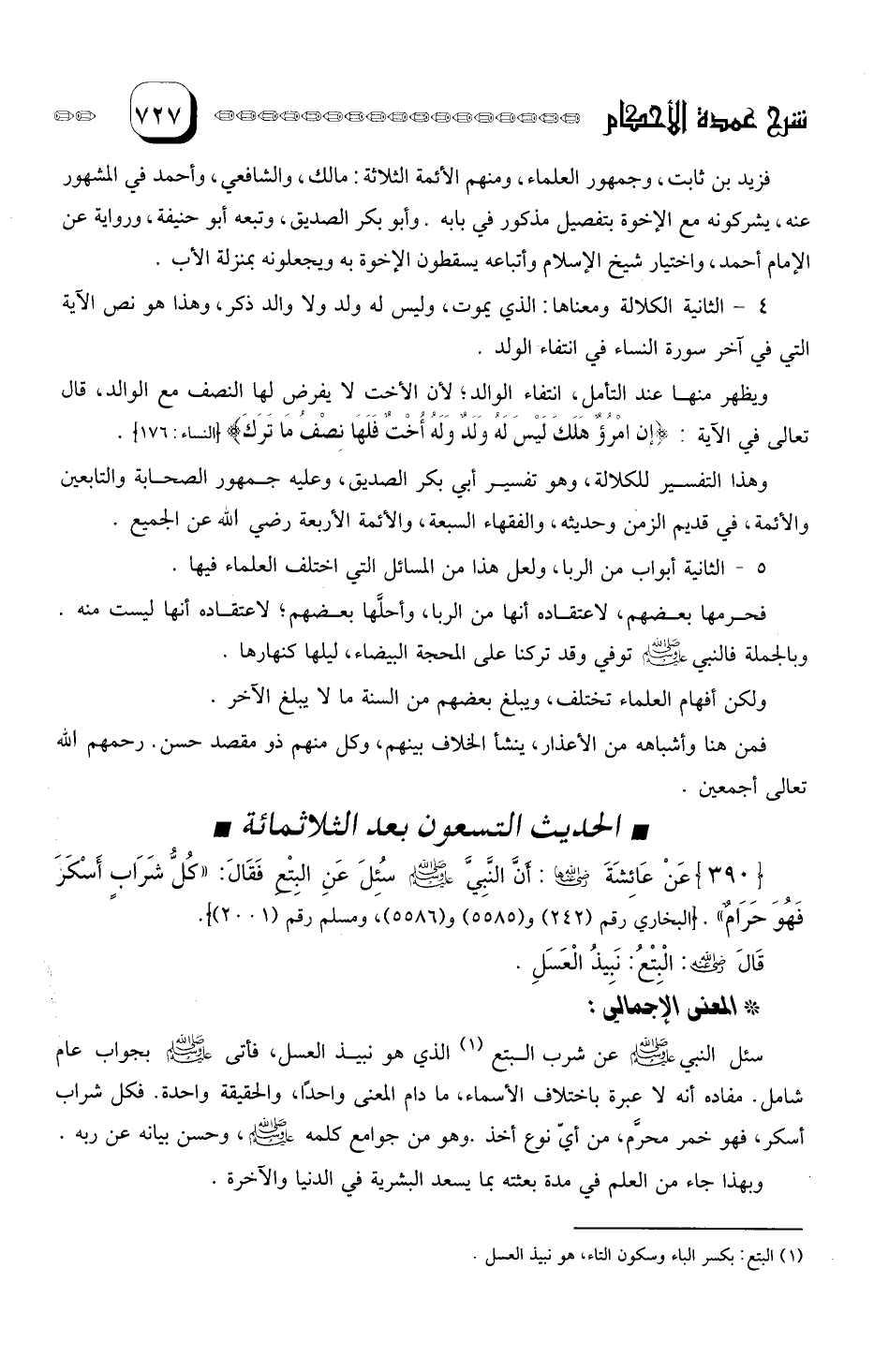 عَنْ عَائِشَةَ رَضي الله عَنْهَا: أنَّ النبي صلى الله عليه وسلم سُئِلَ عَن البِتْعِ فقَالَ: "كُلُّ شَرَابٍ أسكر فَهُوَ حرام".