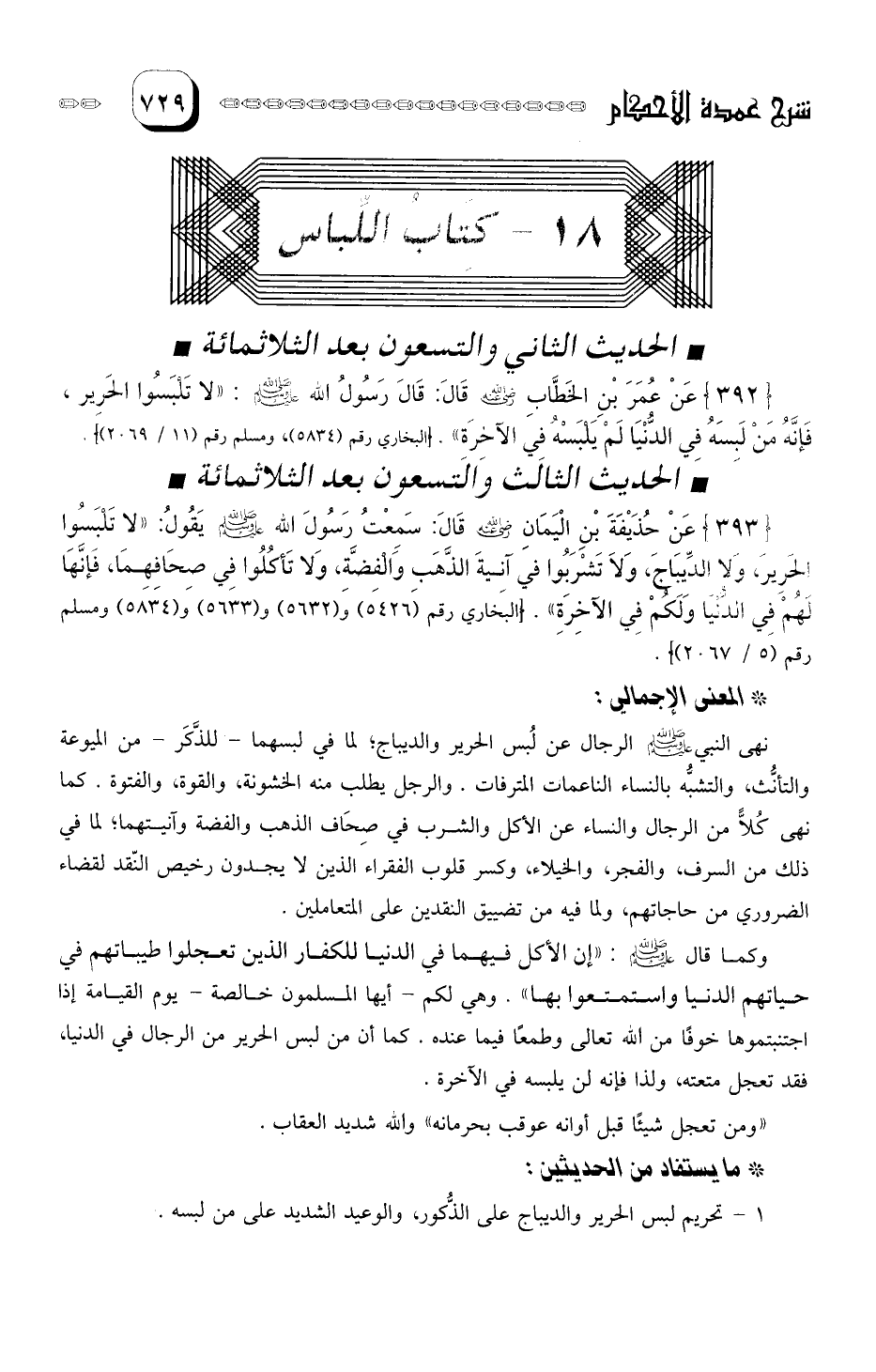 1- تحريم لبس الحرير والديباج على الذكور، والوعيد الشديد على من لبسه.