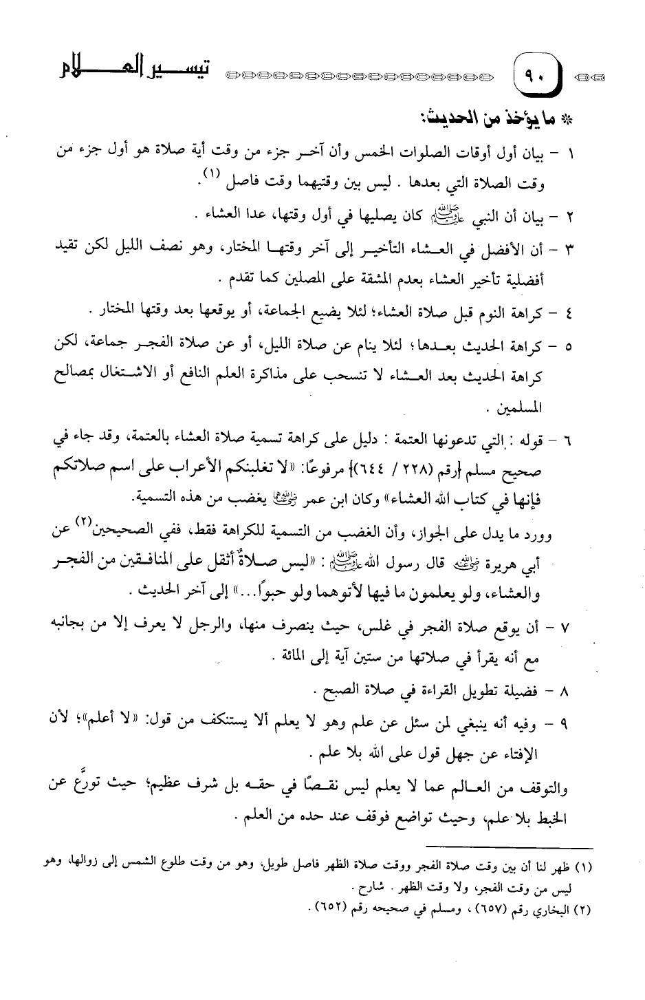 1- بيان أول أوقات الصلوات الخمس وأن آخر جزء من وقت أية صلاة هو أول جزء من وقت الصلاة التي بعدها. فليس بين وقتيهما وقت فاصل.