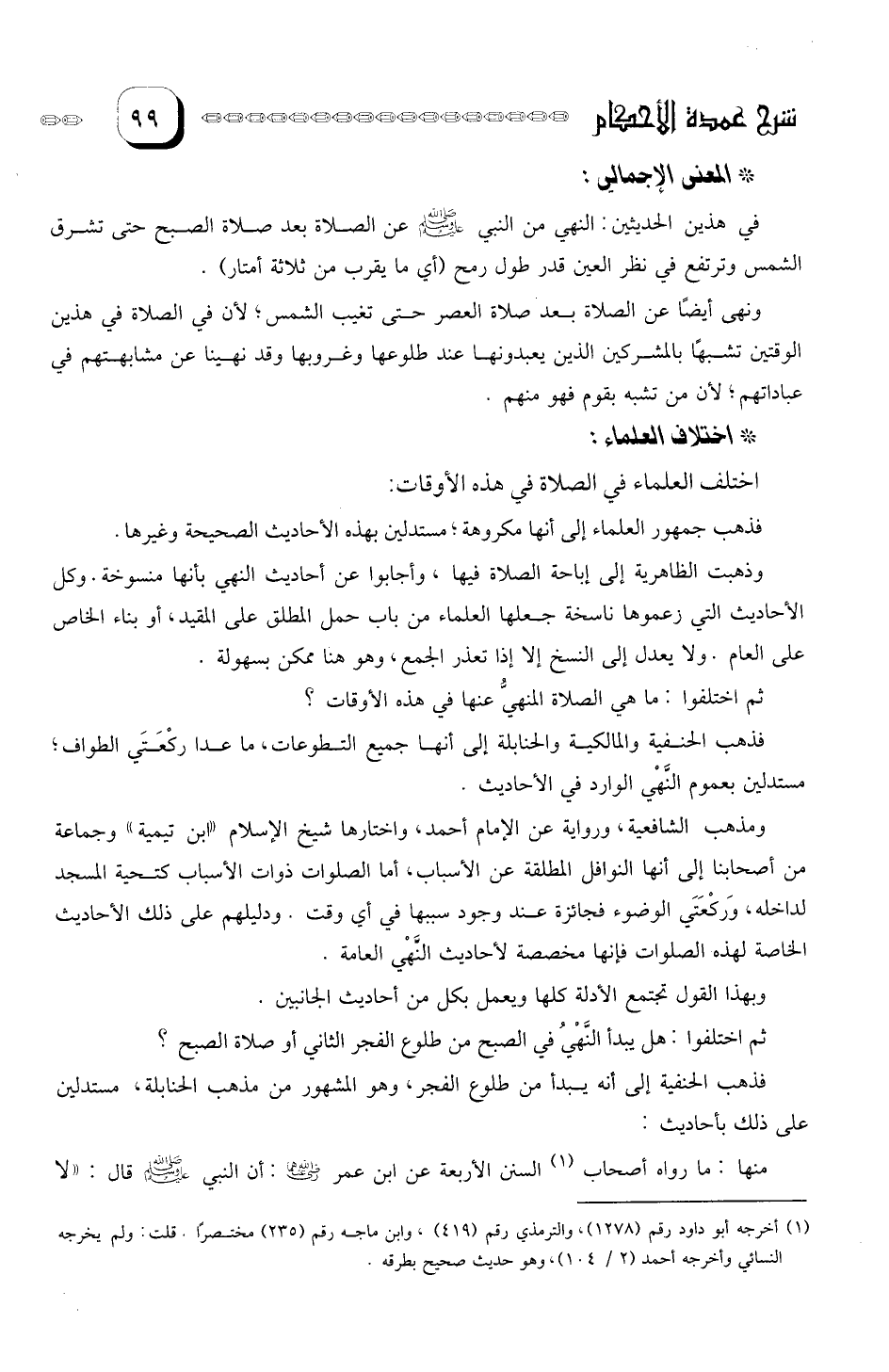 ونهى أيضا عن الصلاة بعد صلاة العصر حتى تغيب الشمس لأن في الصلاة في هذين الوقتين تشبهاً بالمشركين الذين يعبدونها عند طلوعها وغروبها وقد نهينا عن مشابهتهم في عباداتهم، لأن من تشبه بقوم فهو منهم.