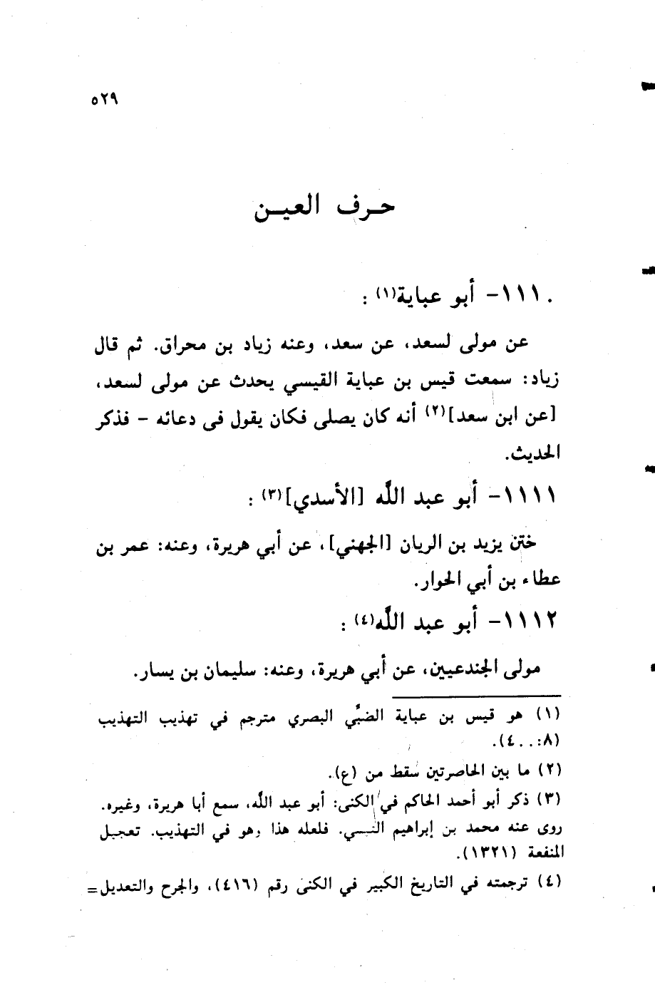 1110 - أَبُو عَبَايَة عَن مولى لسعد عَن سعد وَعنهُ زِيَاد بن محراق ثمَّ قَالَ زِيَاد سَمِعت قيس بن عَبَايَة الْقَيْسِي يحدث عَن مولى لسعد عَن بن سعد أَنه كَانَ يُصَلِّي فَكَانَ يَقُول فِي دُعَائِهِ فَذكر الحَدِيث