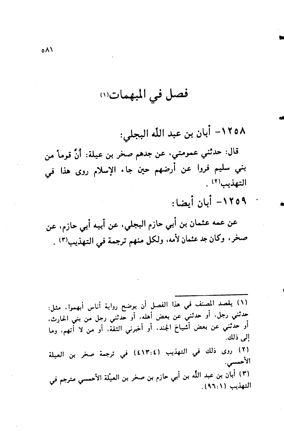 1258 - أبان بن عبد الله البَجلِيّ قَالَ حَدثنِي عمومتي عَن جدهم صَخْر بن عيلة أَن قوما من بني سليم فروا عَن أَرضهم حِين جَاءَ الْإِسْلَام روى هَذَا فِي التَّهْذِيب