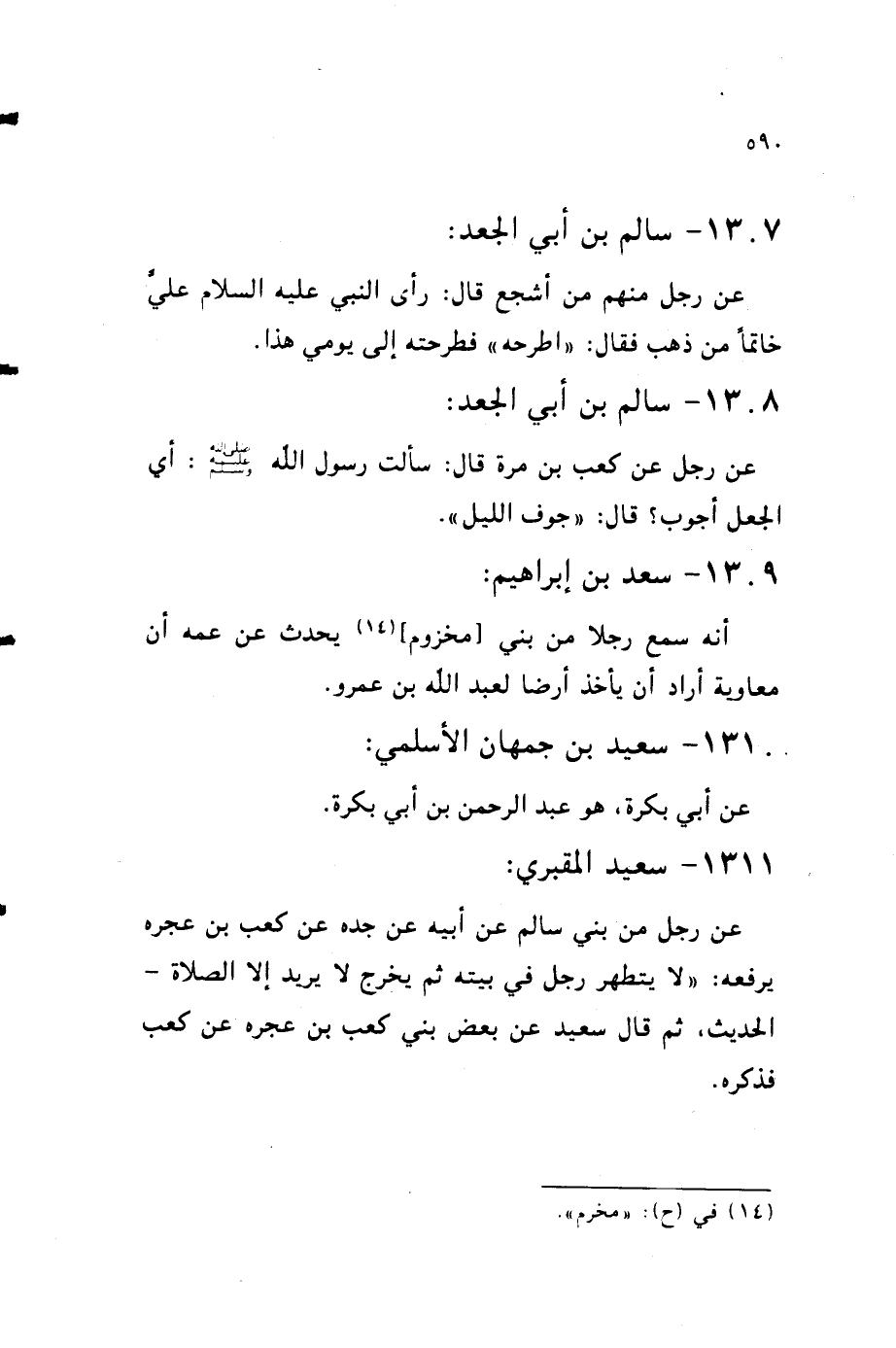 1311 - سعيد المَقْبُري عَن رجل من بني سَالم عَن أَبِيه عَن جده عَن كَعْب بن عُجَره يرفعهُ لَا يتَطَهَّر رجل فِي بَيته ثمَّ يخرج لَا يُرِيد إِلَّا الصَّلَاة الحَدِيث ثمَّ قَالَ سعيد عَن بعض بني كَعْب بن عجْرَة عَن كَعْب فَذكره