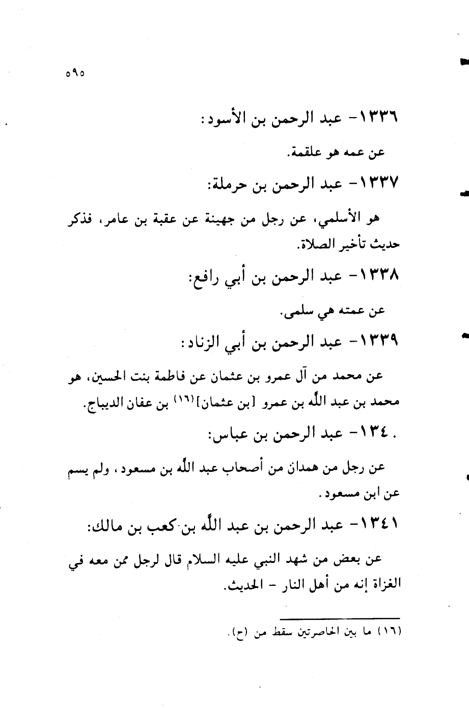 1340 - عبد الرَّحْمَن بن عَبَّاس عَن رجل من هَمدَان من أَصْحَاب عبد الله بن مَسْعُود وَلم يسم عَن بن مَسْعُود