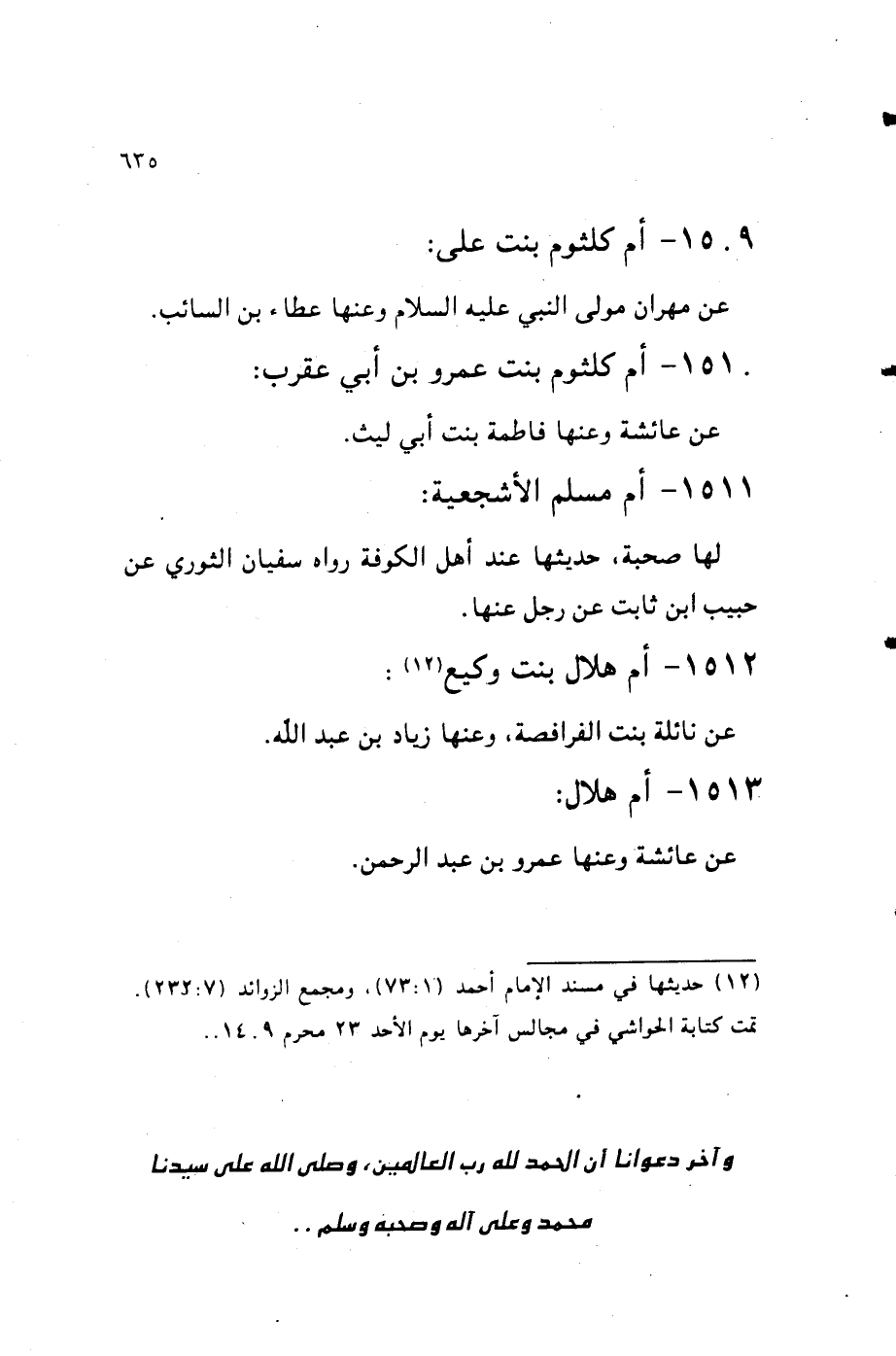 1513 - أم هِلَال عَن عَائِشَة وعنها عَمْرو بن عبد الرَّحْمَن فصل