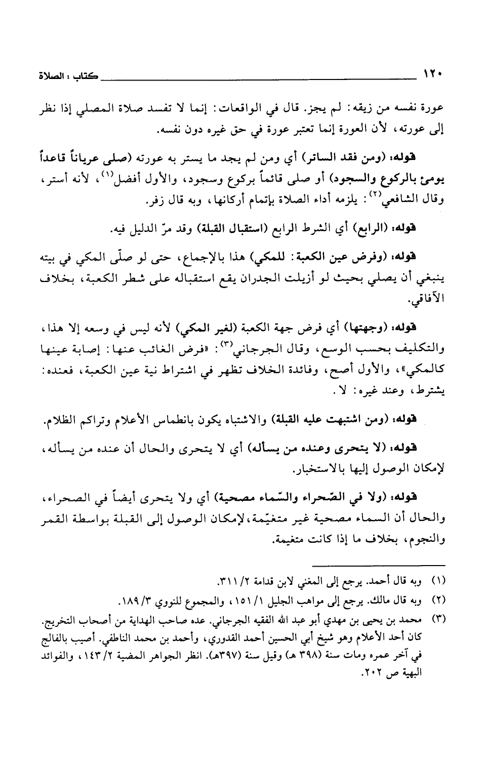 قوله: (وجهتها) أي فرض جهة الكعبة (لغير المكي) لأنه ليس في وسعه إلا هذا، والتكليف بحسب الوسع، وقال الجرجاني: "فرض الغائب عنها: إصابة عينها كالمكي"، والأول أصح، وفائدة الخلاف تظهر في اشتراط نية عين الكعبة، فعنده: يشترط، وعند غيره: لا.