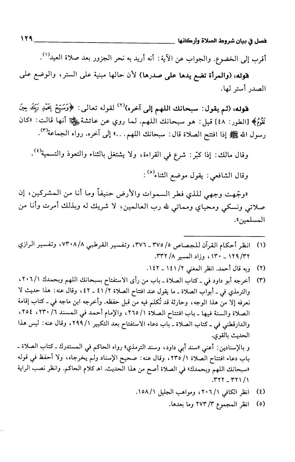 "وجهت وجهي للذي فطر السموات والأرض حنيفاً وما أنا من المشركين، إن صلاتي ونسكي ومحياي ومماتي لله رب العالمين، لا شريك له وبذلك أمرت وأنا من المسلمين".