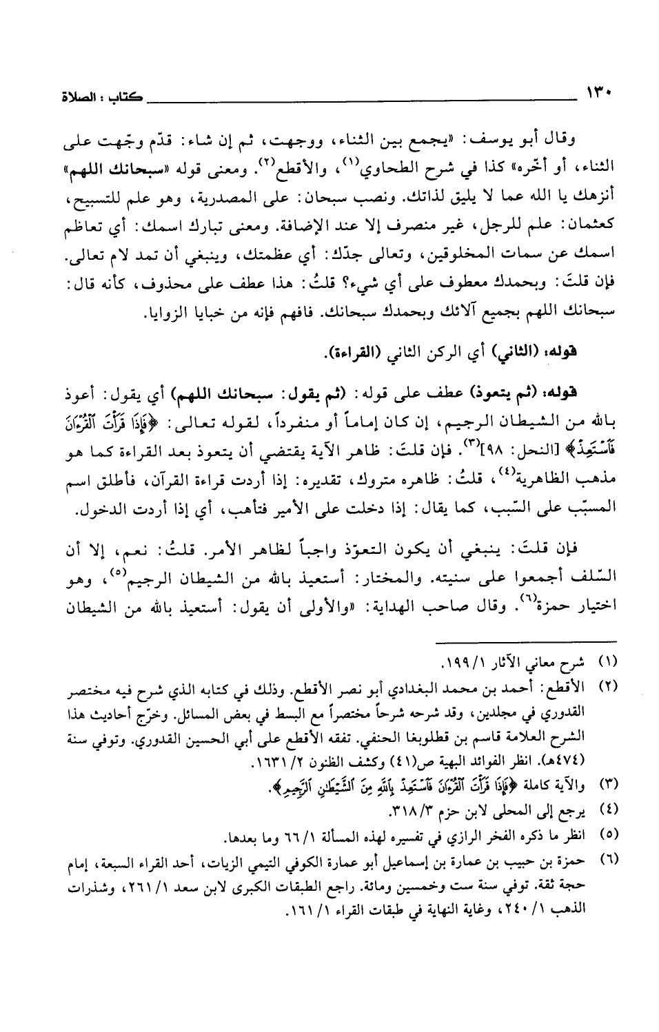 فإن قلت: ينبغي أن يكون التعوذ واجباً لظاهر الأمر. قلت: نعم، إلا أن السلف أجمعوا على سنيته. والمختار: أستعيذ بالله من الشيطان الرجيم، وهو اختيار حمزة. وقال صاحب الهداية: "والأولى أن يقول: أستعيذ بالله من الشيطان