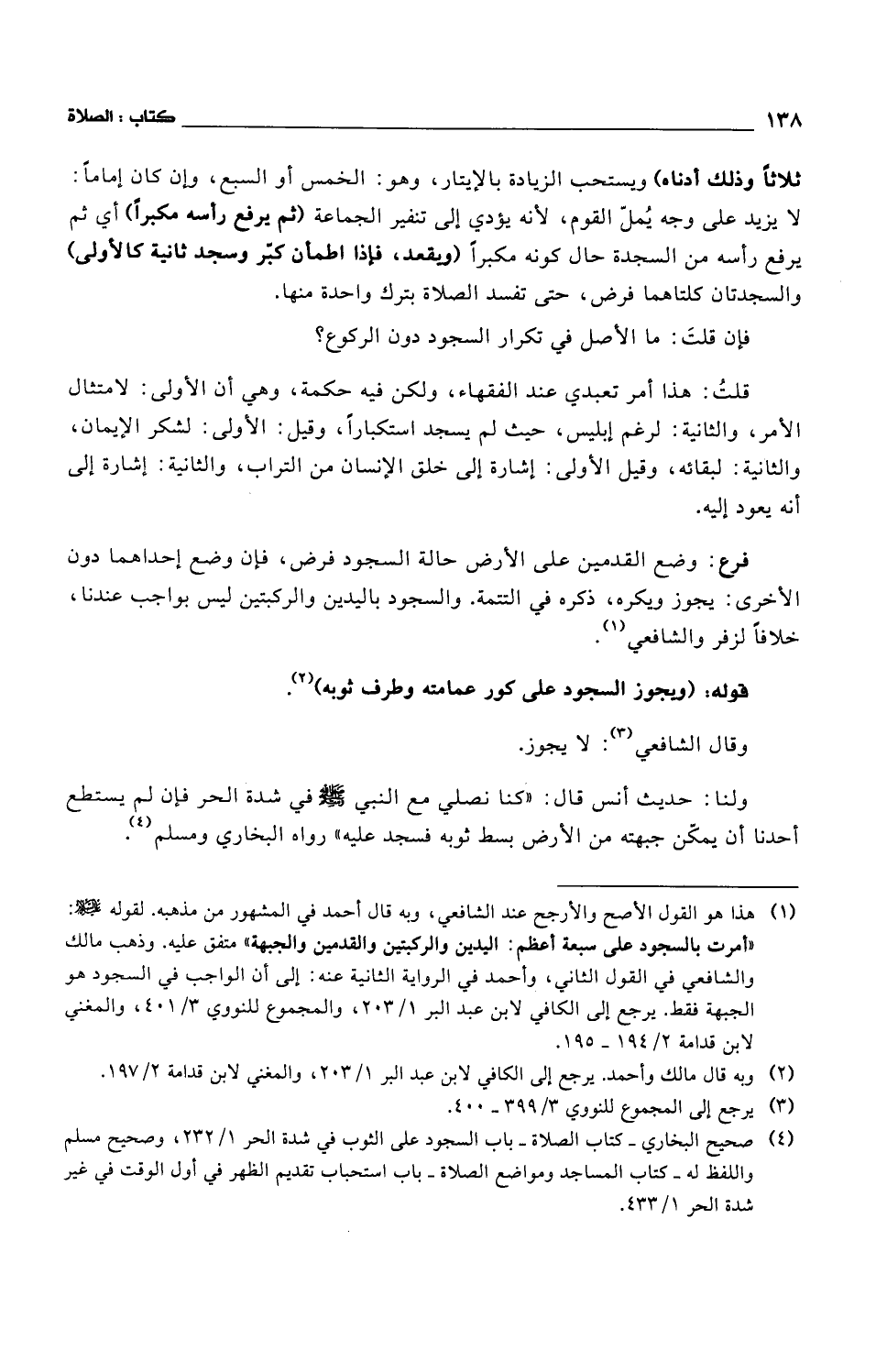 ولنا: حديث أنس قال: "كنا نصلي مع النبي صلى الله عليه وسلم في شدة الحر فإن لم يستطع أحدنا أن يمكن جبهته من الأرض بسط ثوبه فسجد عليه" رواه البخاري ومسلم.