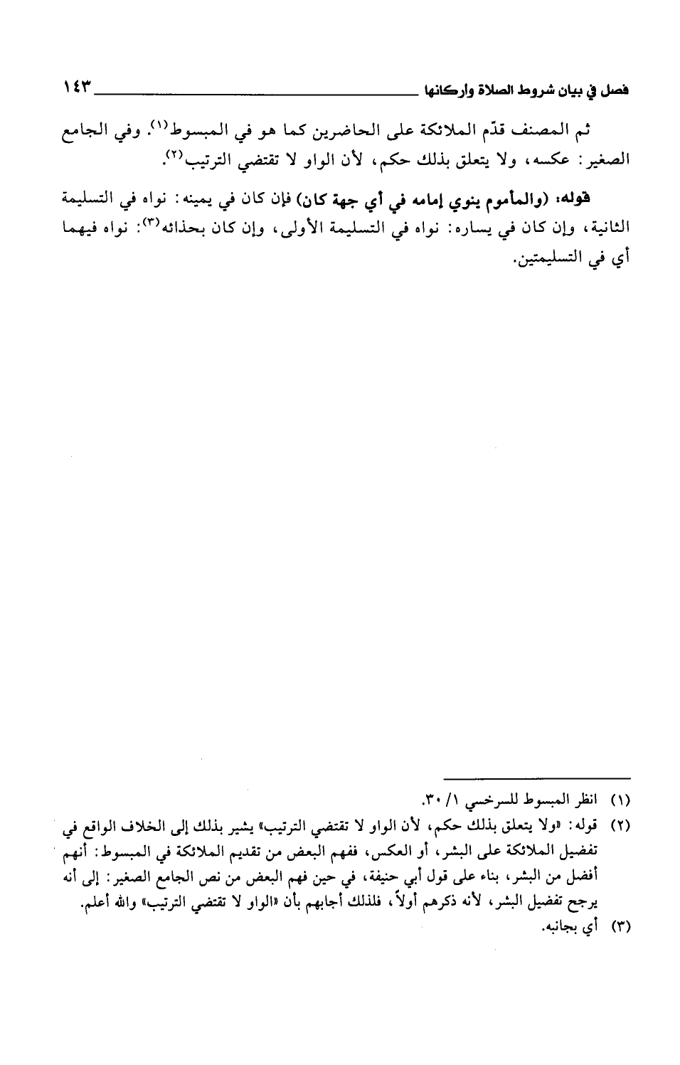 ثم المصنف قدم الملائكة على الحاضرين كما هو في المبسوط. وفي الجامع الصغير: عكسه، ولا يتعلق بذلك حكم، لأن الواو لا تقتضي الترتيب.