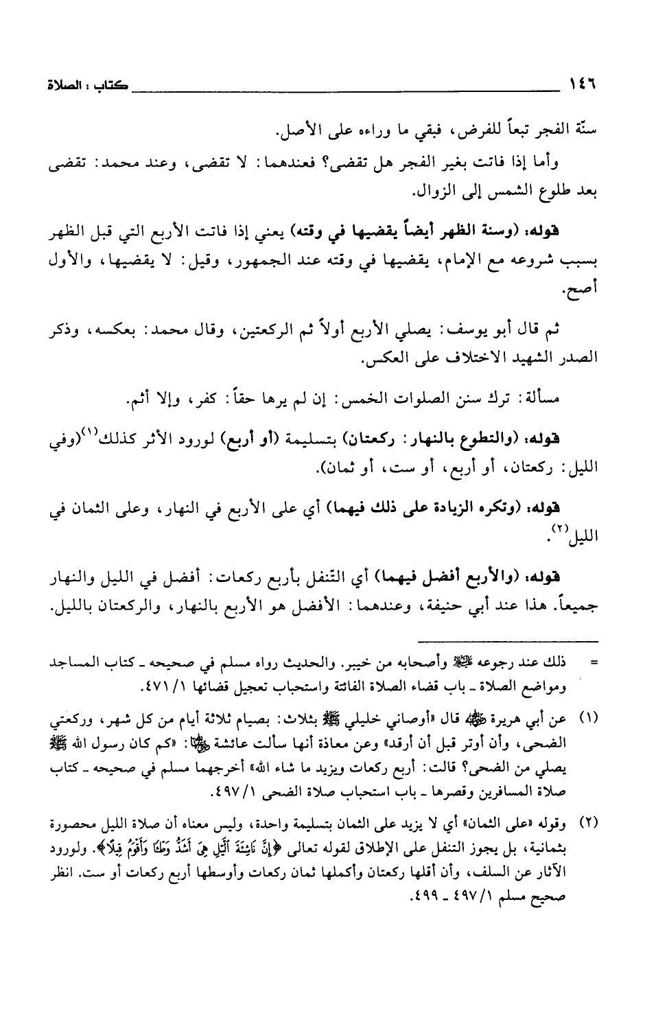 قوله: (والأربع أفضل فيهما) أي التنفل بأربع ركعات: أفضل في الليل والنهار جميعاً. هذا عند أبي حنيفة، وعندهما: الأفضل هو الأربع بالنهار، والركعتان بالليل.