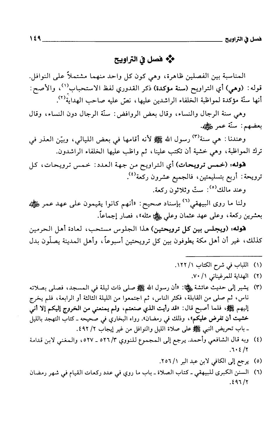 المناسبة بين الفصلين ظاهرة، وهي كون كل واحد منهما مشتملاً على النوافل. قوله: (وهي) أي التراويح (سنة مؤكدة) ذكر القدوري لفظ الاستحباب، والأصح: أنها سنة مؤكدة لمواظبة الخلفاء الراشدين عليها، نص عليه صاحب الهداية.